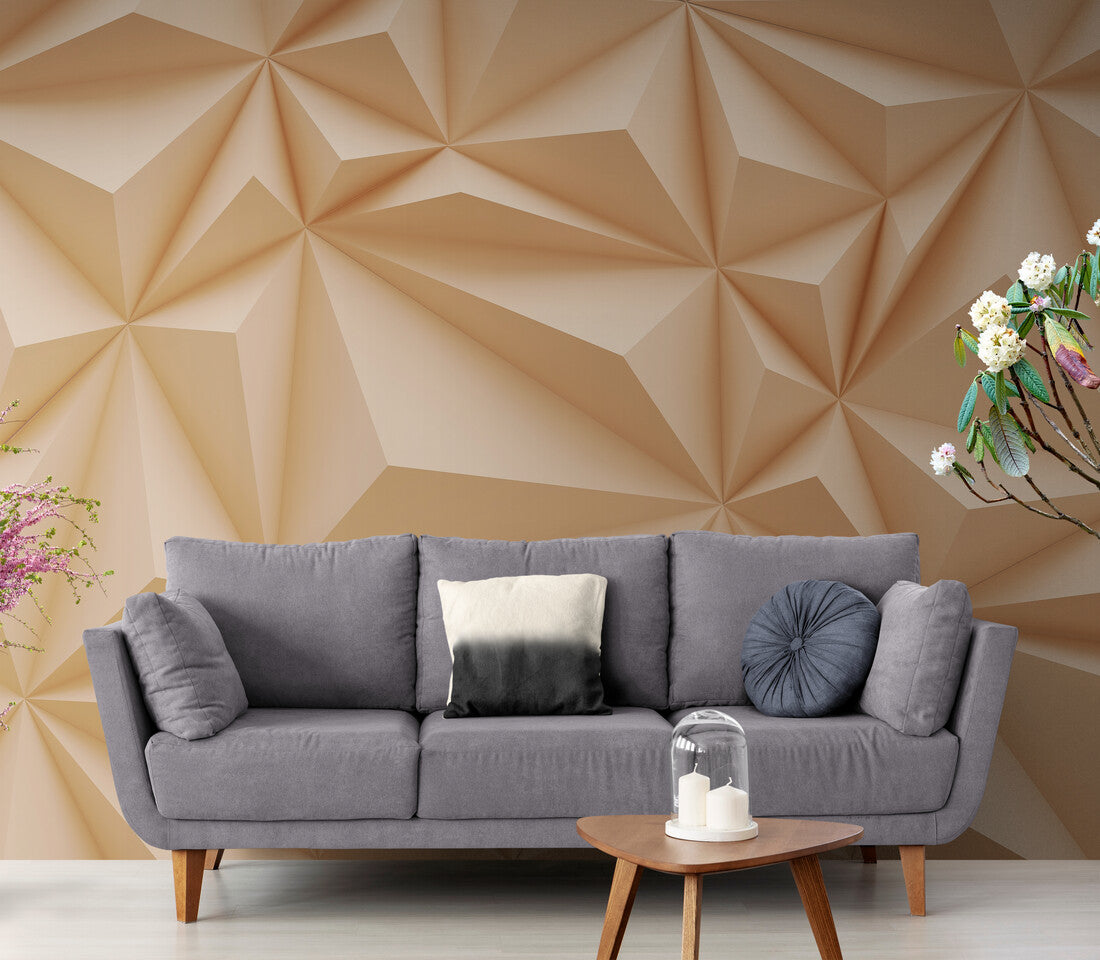 Offer a sculptural beige relief, resembling scrolls or geometric hollows as if shaped in stone or plaster. The trompe-l'oeil print simulates texture, conferring an architectural effect. A powerful design, which animates the wall with an almost tactile presence, evoking a subtle interplay between shadow and light.