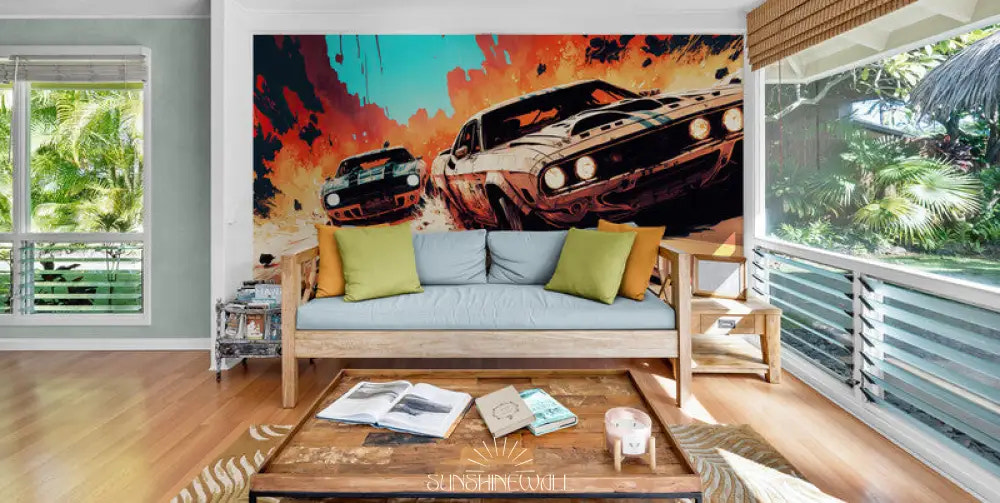 Add a touch of adrenaline and dynamism to your decor with this panoramic wallpaper depicting racing cars in action. Its exceptional realism and graphic precision bring a sporty and energetic atmosphere to your interior. Ideal for an office, a teenager's bedroom, or a space dedicated to car enthusiasts, this decor perfectly evokes the speed and excitement of racetracks. The high-end quality of this wallpaper guarantees impressive visual immersion, creating a unique and captivating atmosphere. A bold and elegant choice for those who want to display their passion with style and originality. Bring the thrill of car racing into your home every day.