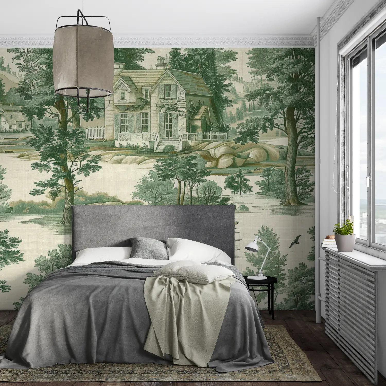 Create a warm and nostalgic atmosphere in your home with this panoramic wallpaper depicting a vintage country house with irresistible charm. The soft shades, rustic aesthetic, and authentic details bring comfort and elegance to your decor. Perfect for a kitchen, living room, or bedroom with a country-chic feel, this decor brings a touch of the sweetness of the past. Its exceptional quality guarantees perfect realism and a durable finish. Every day, experience the comfort of a timeless country setting. An ideal decoration for lovers of vintage and cozy style.