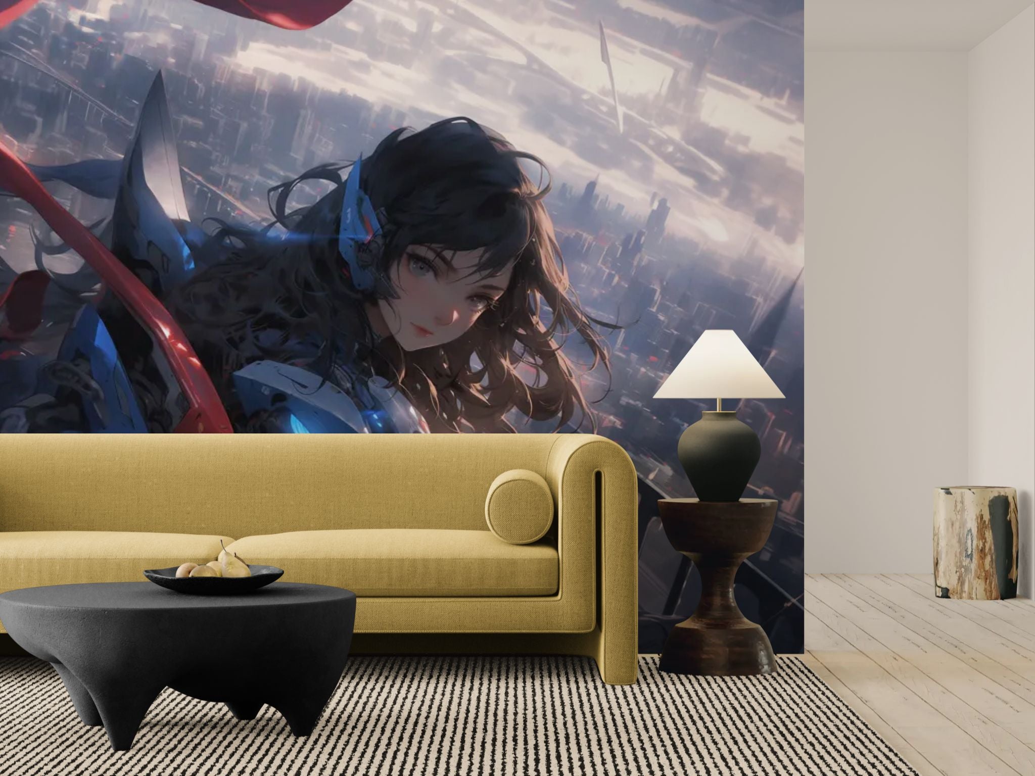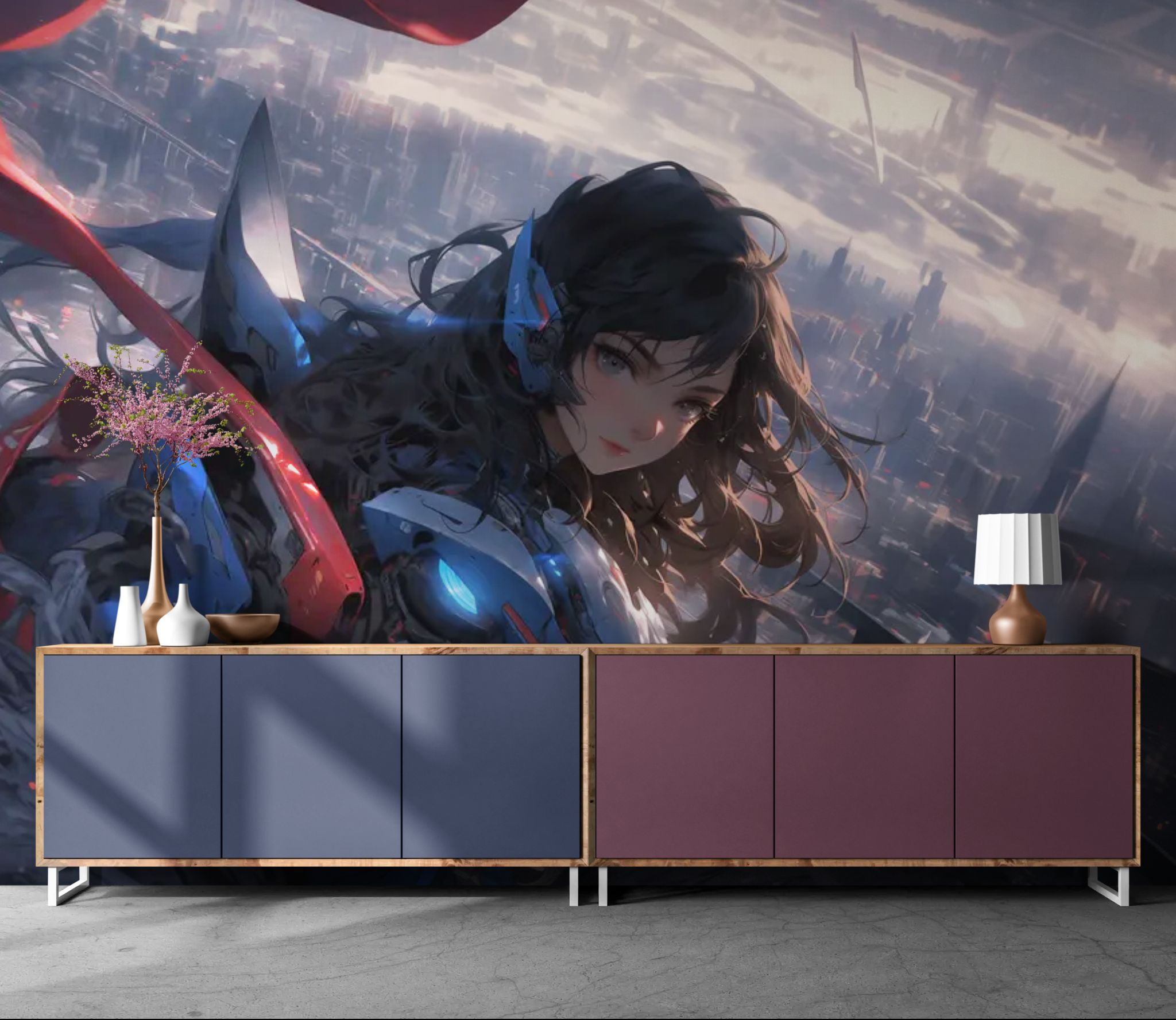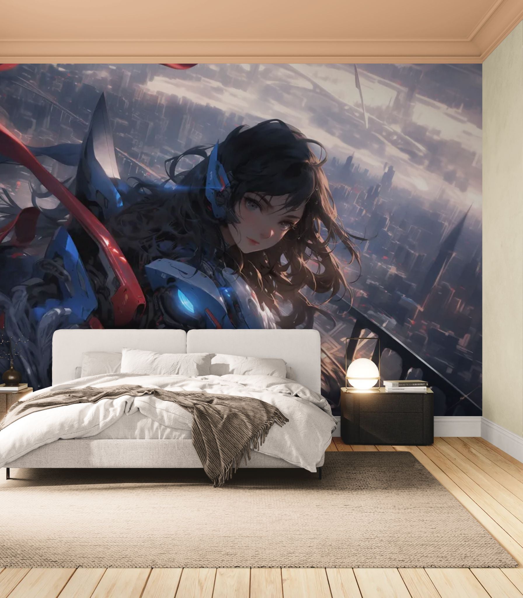 Papier Peint Japonais - Gardienne du Dragon de Feu