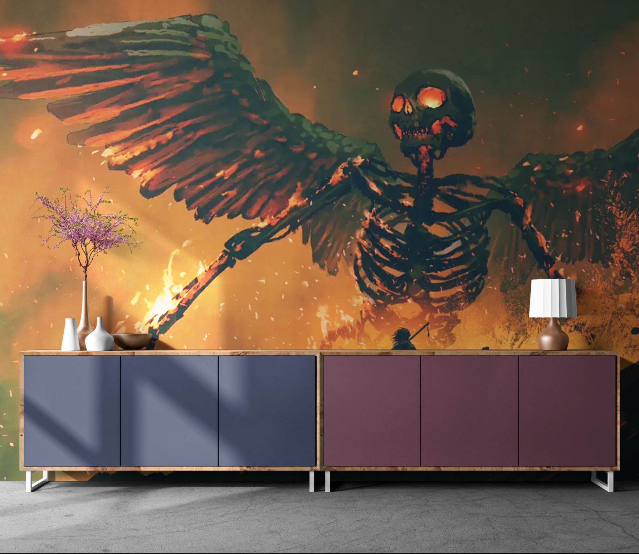 Papier Peint Dark Fantasy - Ange Squelette Infernal
