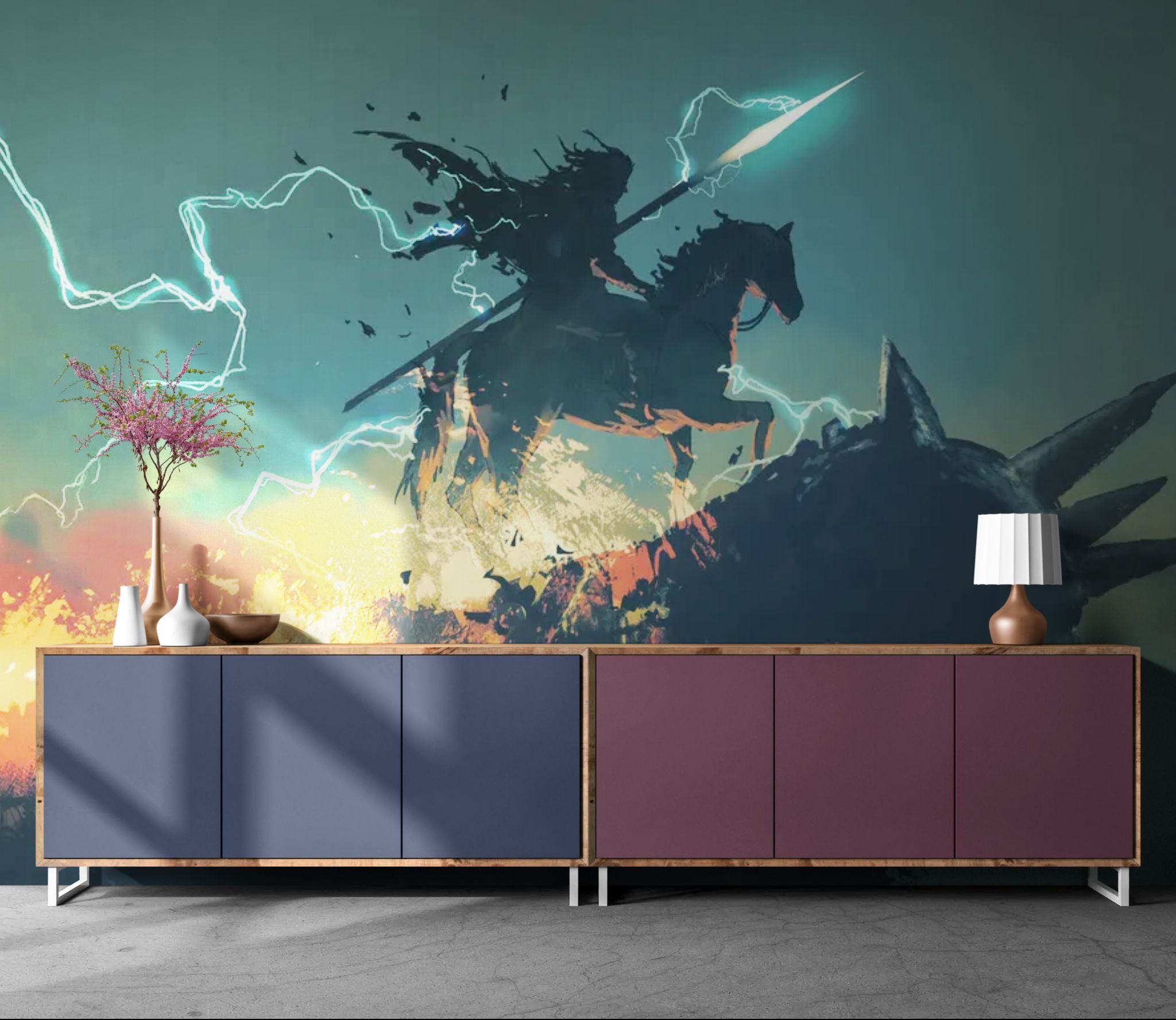 Papier Peint Dark Fantasy - Cavalier de l’Orage