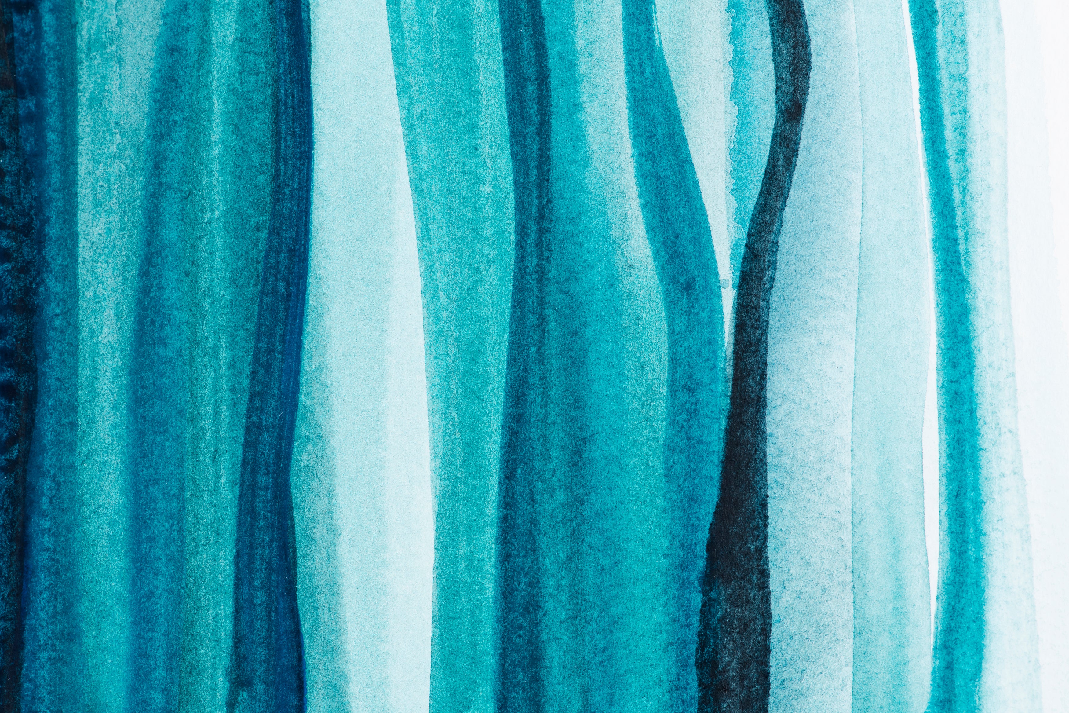 The soothing fluidity of water. Create a sense of height and calm with this abstract wallpaper . Vertical blue watercolor drips evoke a summer rain or a stylized waterfall. The shades of blue, the color of serenity, instantly soothe the mind. Perfect for a bathroom, office, or bedroom, this design combines the modernity of abstract art with the gentleness of water.
