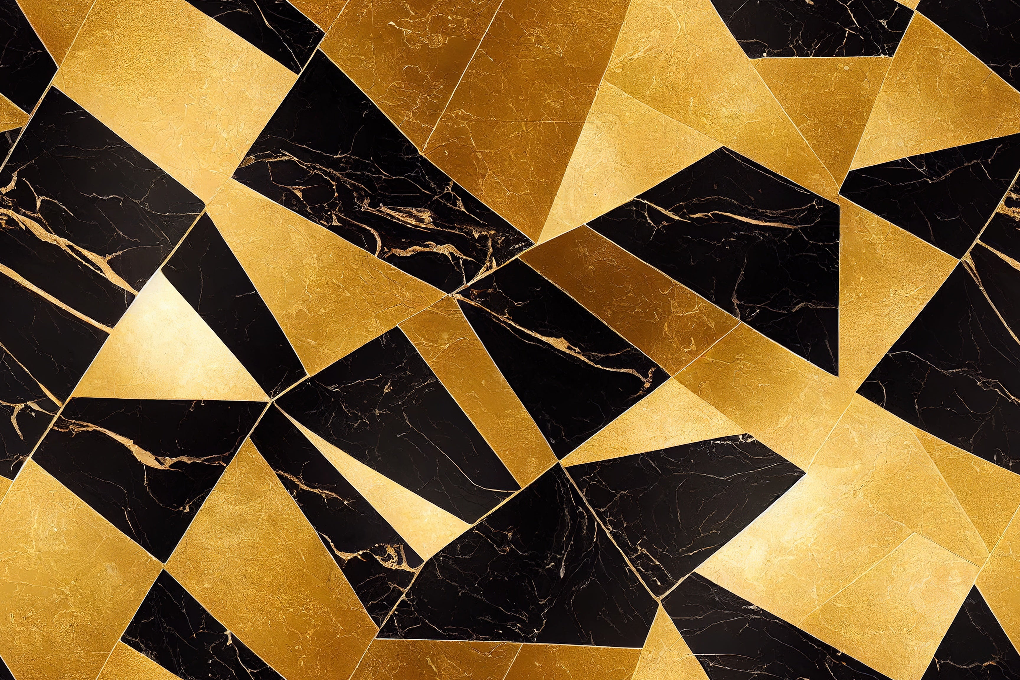 The fusion of mineral luxury and graphic precision. Enhance your walls with this sophisticated abstract wallpaper . Fragments of precious marble are arranged in geometric patterns, highlighted by luminous gold inlays. This design plays on the contrast between organic materials and Art Deco structure. A statement piece for an upscale living room or an entryway seeking to impress with its refinement.