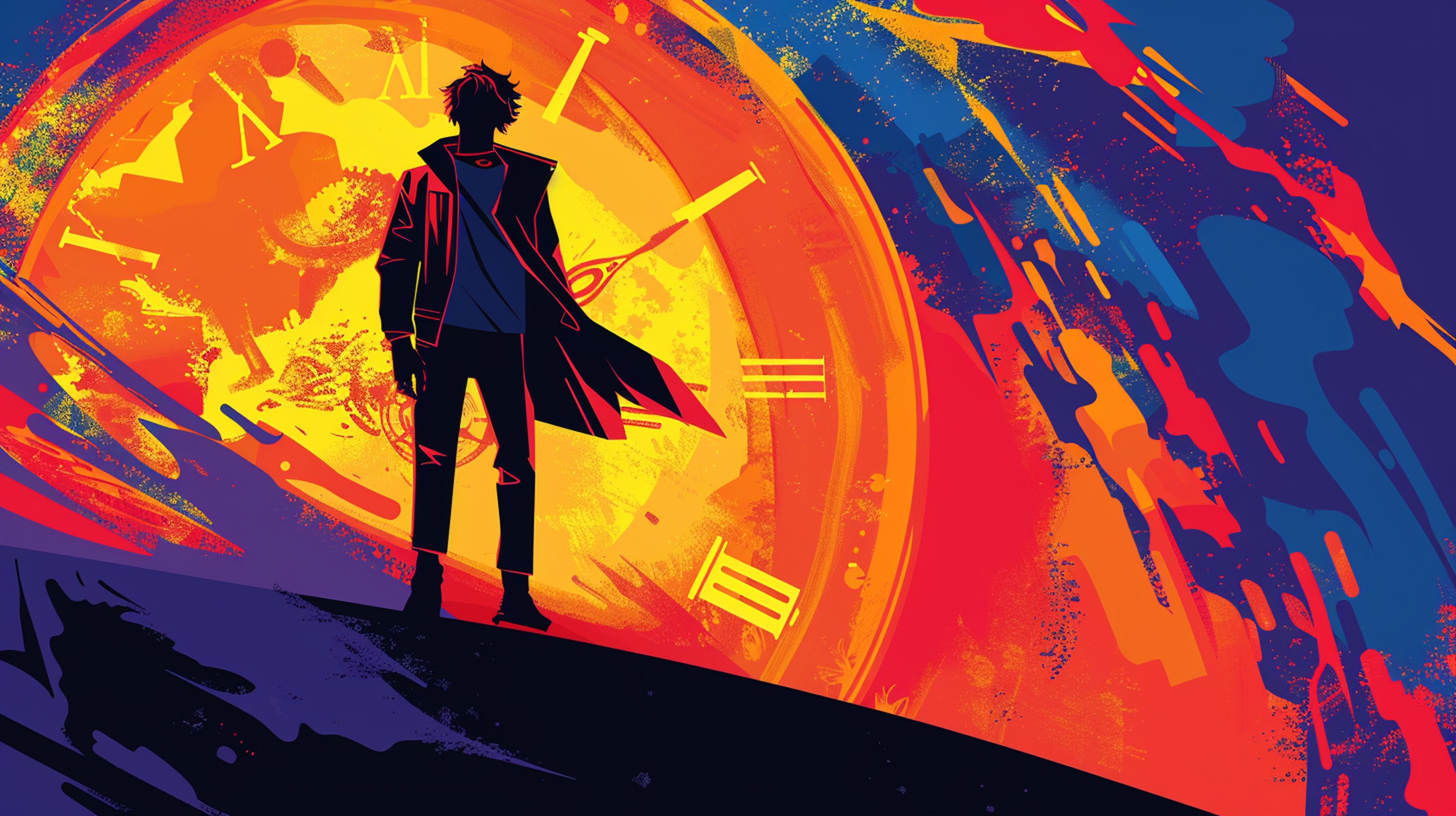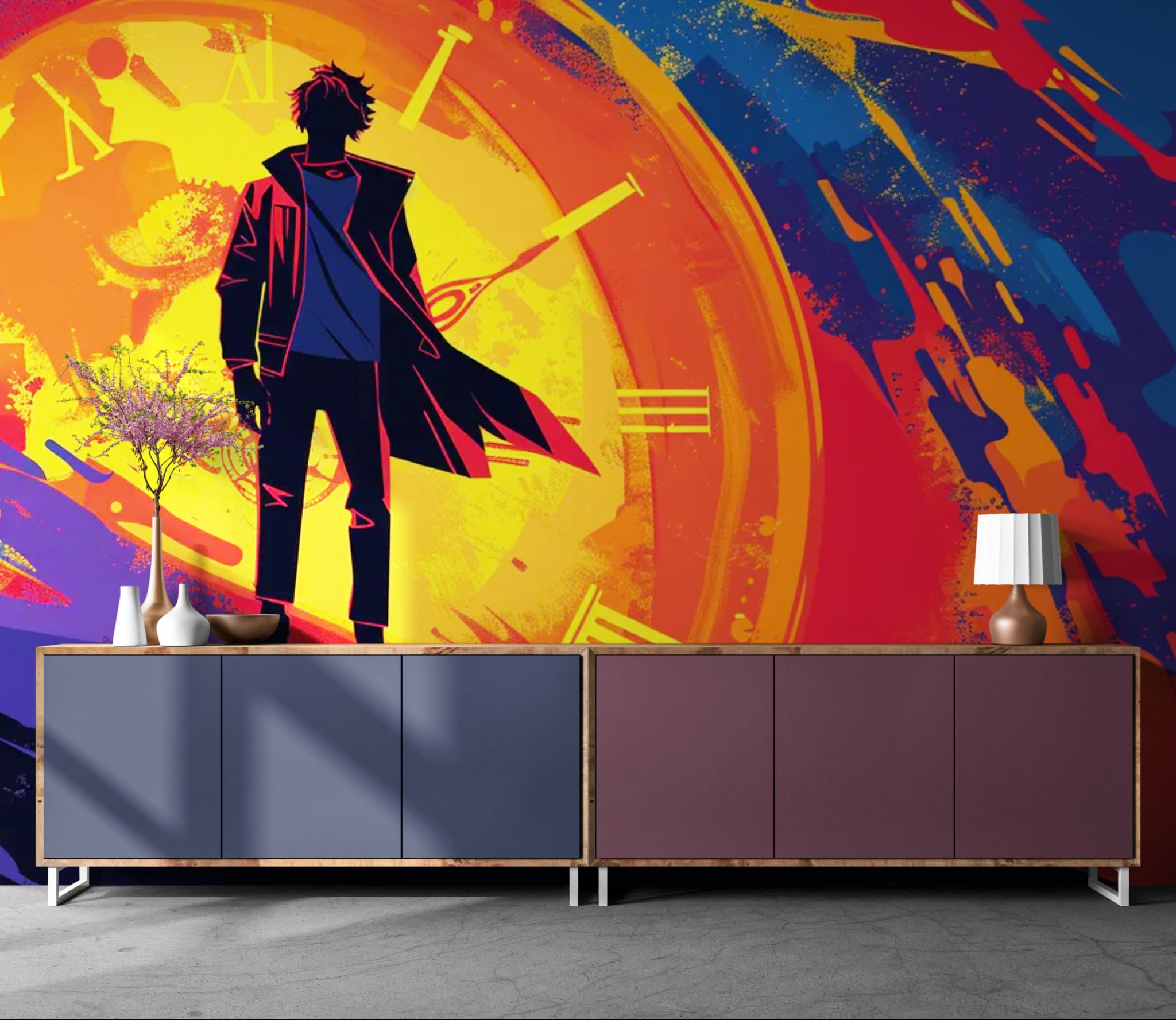 Un personnage mystique manipule les forces du temps au cœur d’une scène inspirée d’un univers fantastique japonais. Une œuvre murale captivante, idéale pour une chambre imaginative, un espace manga ou un bureau créatif.