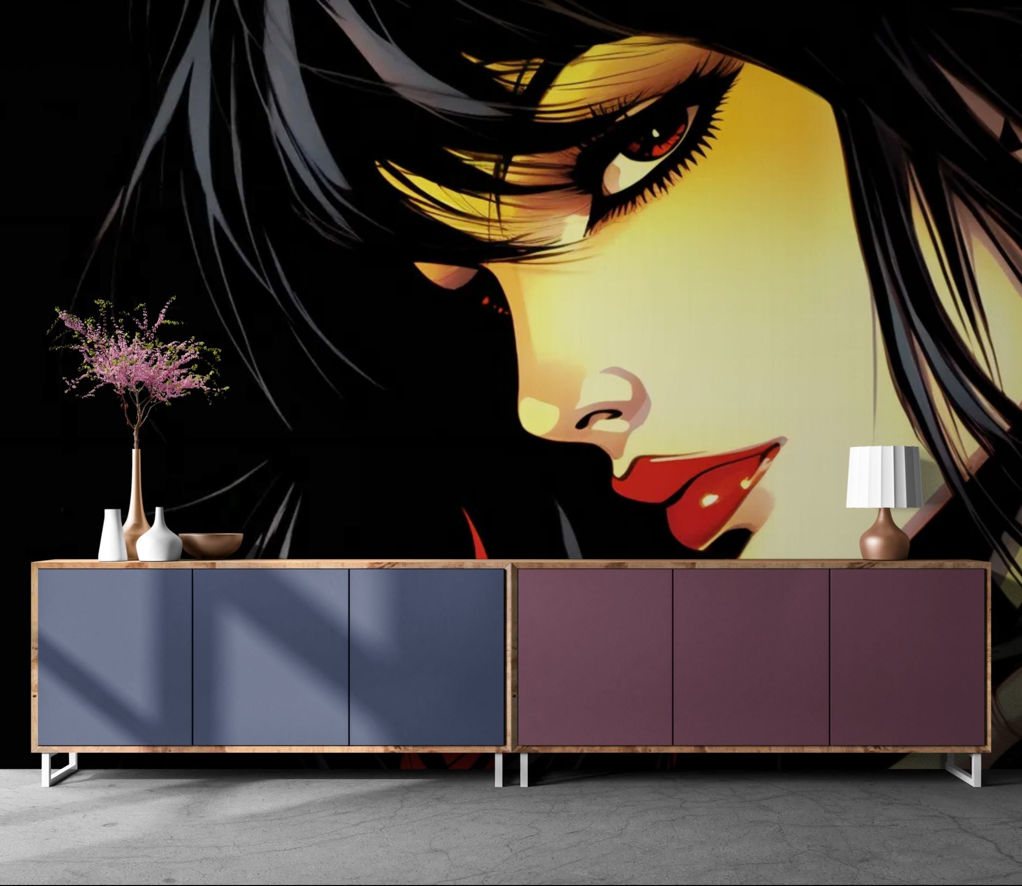 Un portrait intense inspiré de l’esthétique anime, mêlant ombres profondes et éclats écarlates. Ce papier peint premium apporte puissance visuelle et mystère à votre intérieur, idéal pour les amateurs d’art graphique japonais. Parfait pour une chambre, un studio créatif ou un setup gaming.