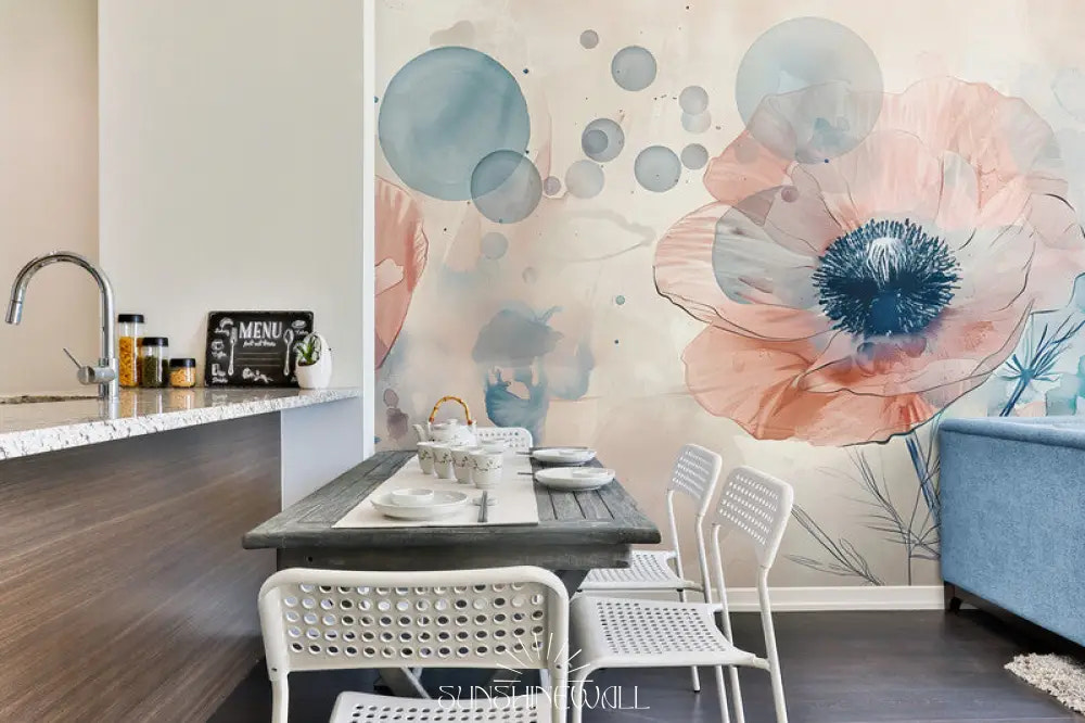 Display refined romanticism with the "Art & Deco Wallpaper - Watercolor Flower." The petals, carefully drawn in watercolor, blend with geometric accents typical of the retro style, producing a balance of rare delicacy. The quality print highlights every detail, from the slight watercolor blur to the more clear lines, giving the room a poetic and high-end aura.