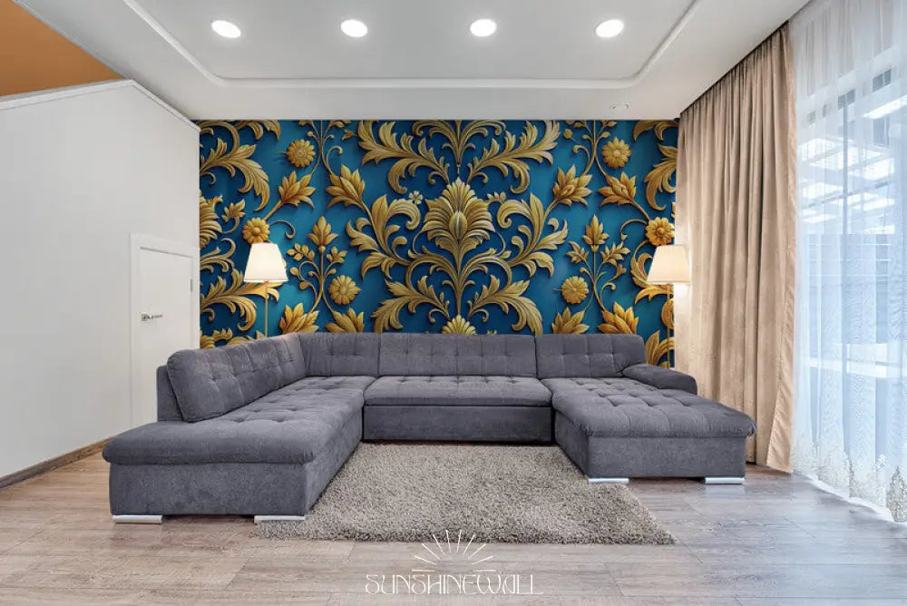 Exult in a vibrant baroque style with the "Baroque Wallpaper - Gold and Blue." Gold-laden arabesques shimmer against a deep blue background, reminiscent of the sumptuous salons of kings. The meticulous printing restores the metallic sheen, while the backing guarantees durability. This determined choice, installed in a living room or entryway, embodies the magnificence of an era, enhanced with the chic spirit of today.