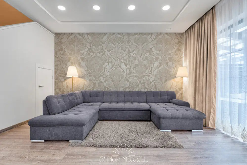 Combine softness and aristocracy with the "Baroque Wallpaper - Beige and Gray Elegance." Floral or arabesque patterns are outlined in neutral tones, for a discreet and refined baroque effect. The high-resolution printing highlights the subtlety of the reliefs, creating a distinguished sense of relief. Ideal for a living room or bedroom where you are looking for the infallible combination of classicism and modernity.