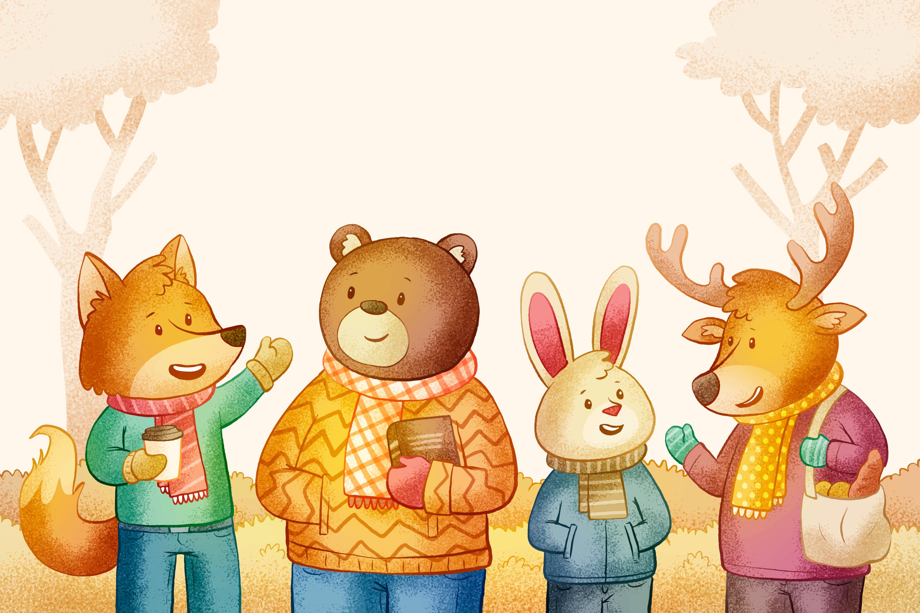 A forest scene populated with exquisitely illustrated animals adorns the walls. The delicate style fosters a reassuring atmosphere, perfect for gently stimulating curiosity. The balanced colors complement everyday life, creating a warm and harmonious décor.