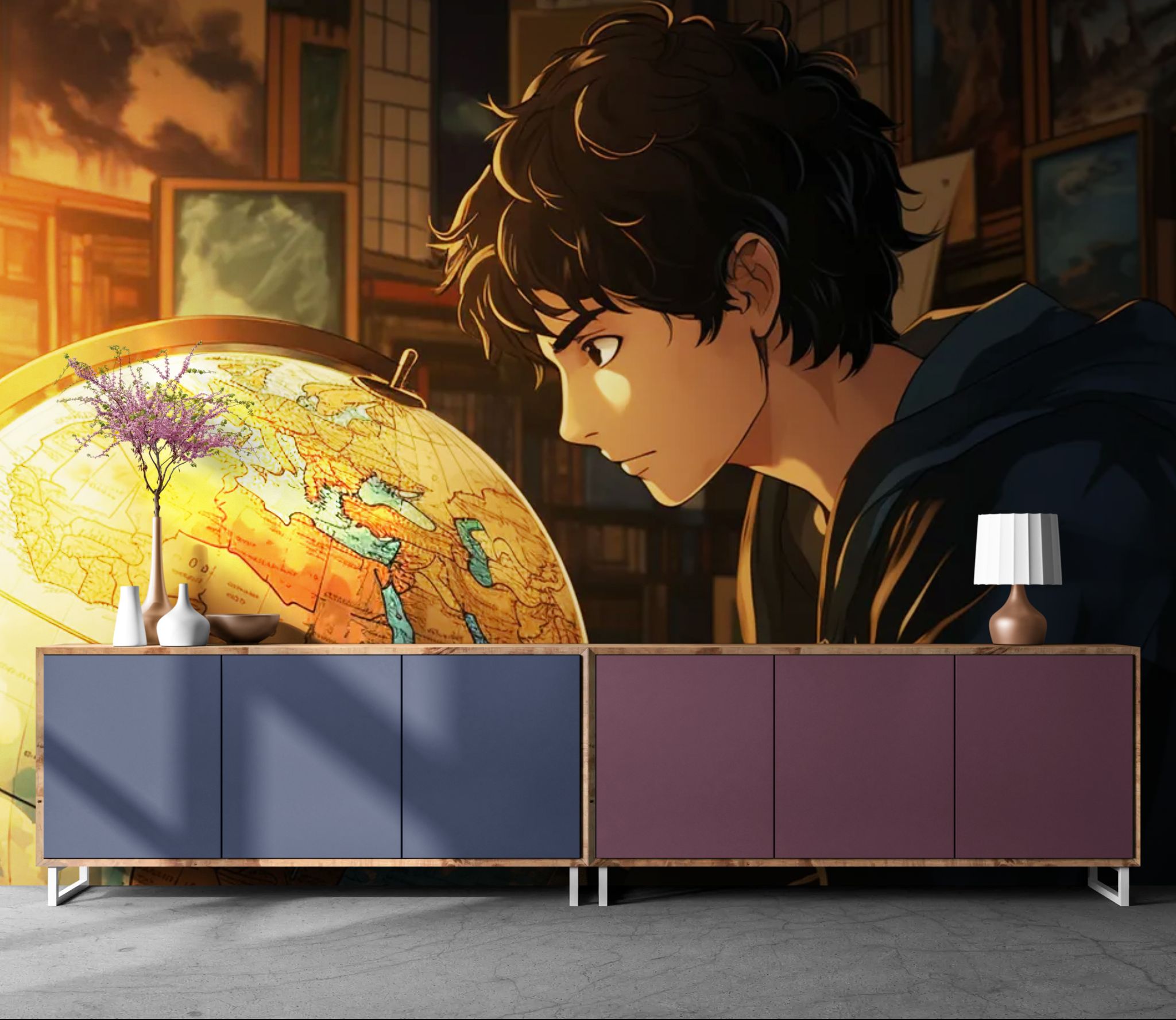 A protective hero watches over the planet in a tender and colorful universe. A joyful and reassuring atmosphere, ideal for a child's bedroom, playroom, or imaginative nursery.