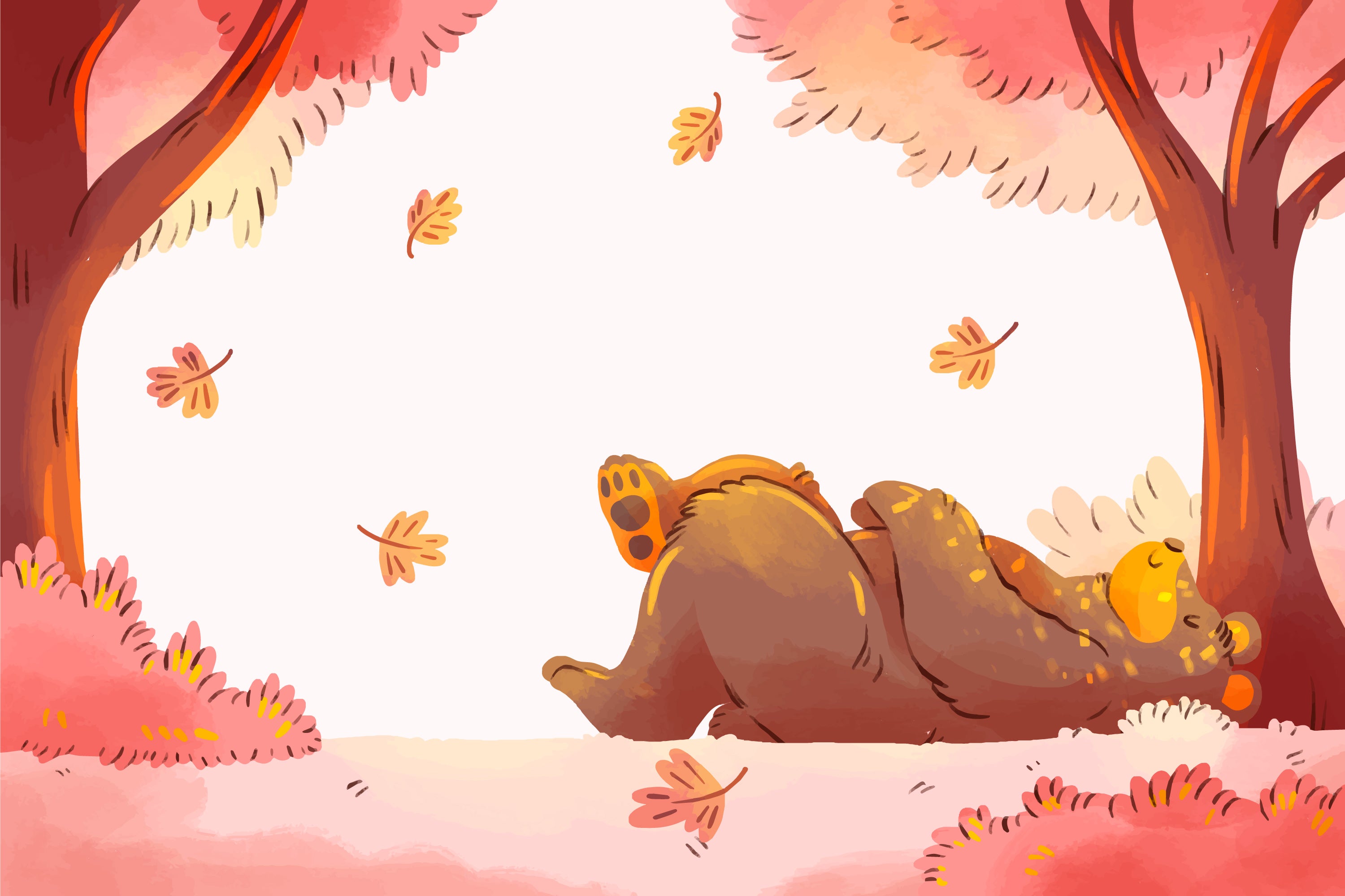 Bears roam freely in a serene autumnal setting. Warm hues create a cozy and calming atmosphere, ideal for a restful bedroom. The exquisite illustrations add a touch of poetry and tenderness, a gentle world inspired by nature.