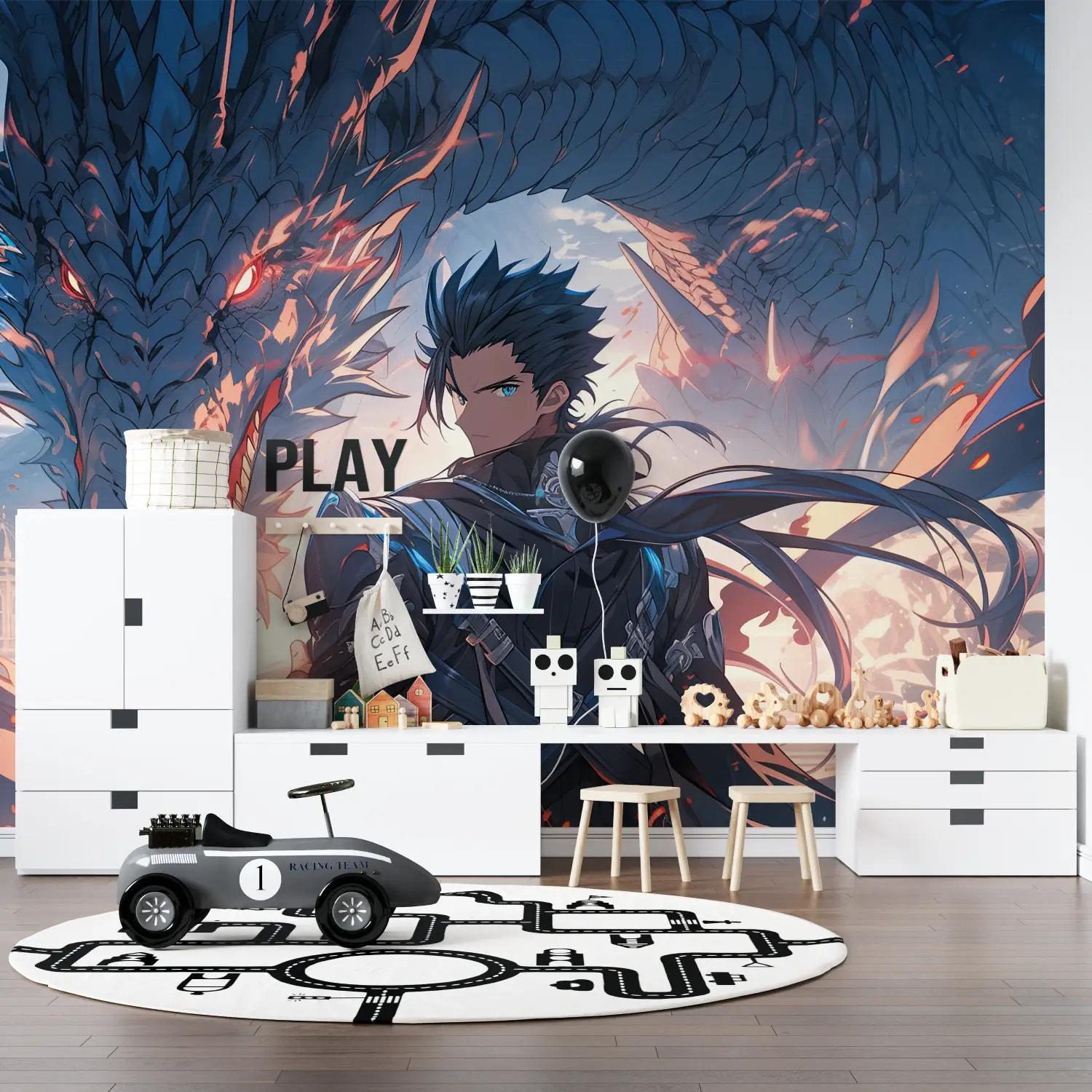 Evoke the magic of a duel between a valiant warrior and a green dragon, in the heart of a mysterious forest. The print gives an almost lifelike dimension to the scene, inviting children to invent legendary quests and bravery.