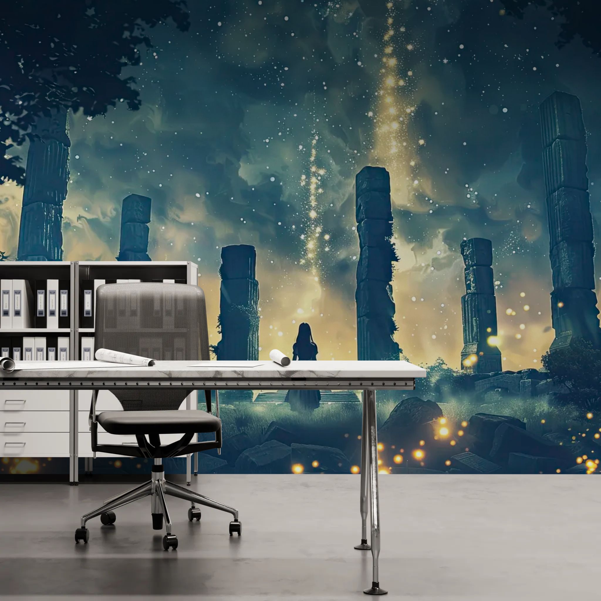 Un cercle sacré s’illumine sous un ciel astral, révélant les secrets d’un peuple oublié. Ambiance mystique idéale pour un salon spirituel, un lieu de méditation ou une bibliothèque magique.