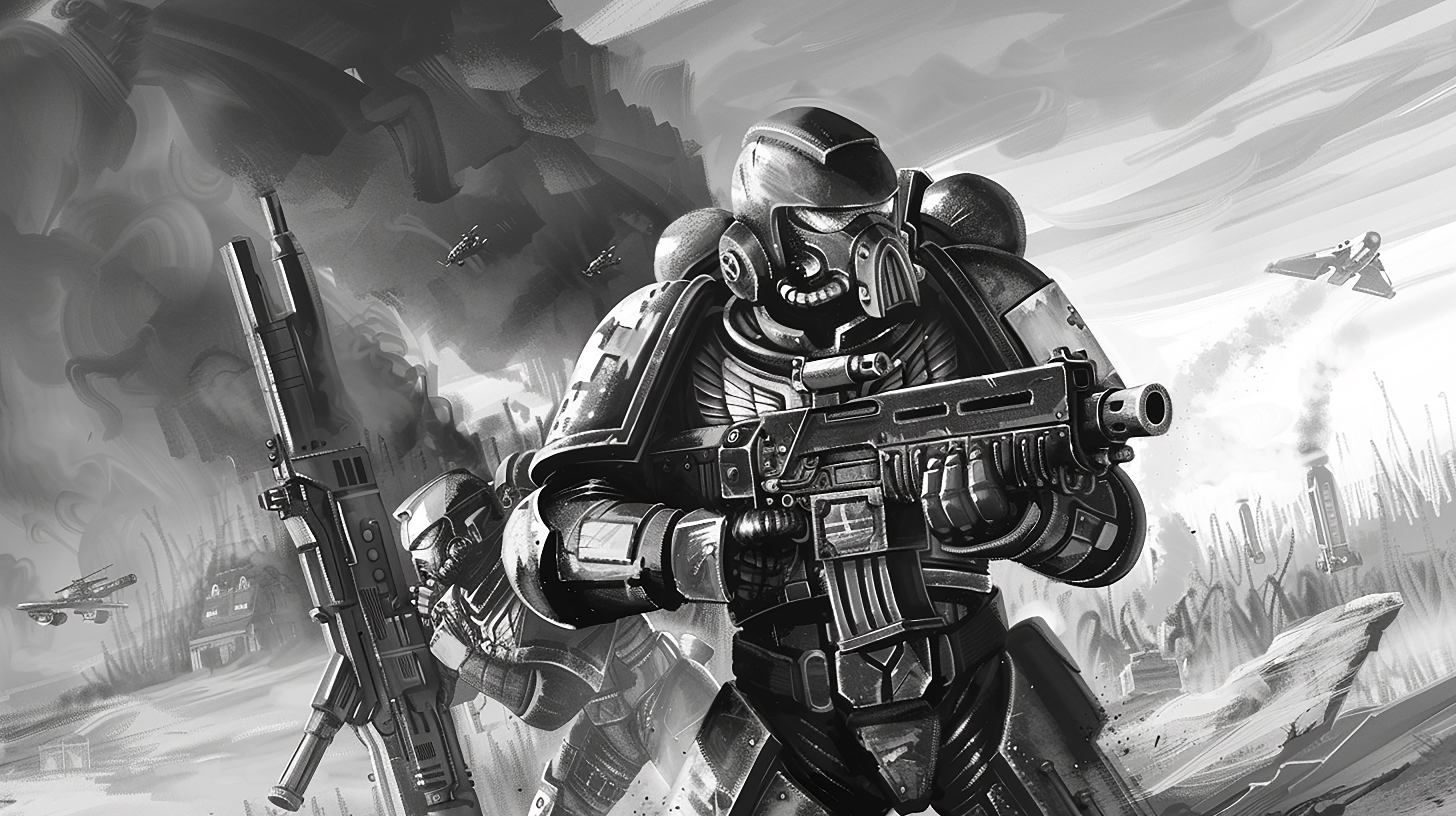 Escouade en armure énergétique, prête à affronter les mondes hostiles de demain. Une esthétique militaire futuriste, parfaite pour une pièce gaming ou un espace de collectionneur.