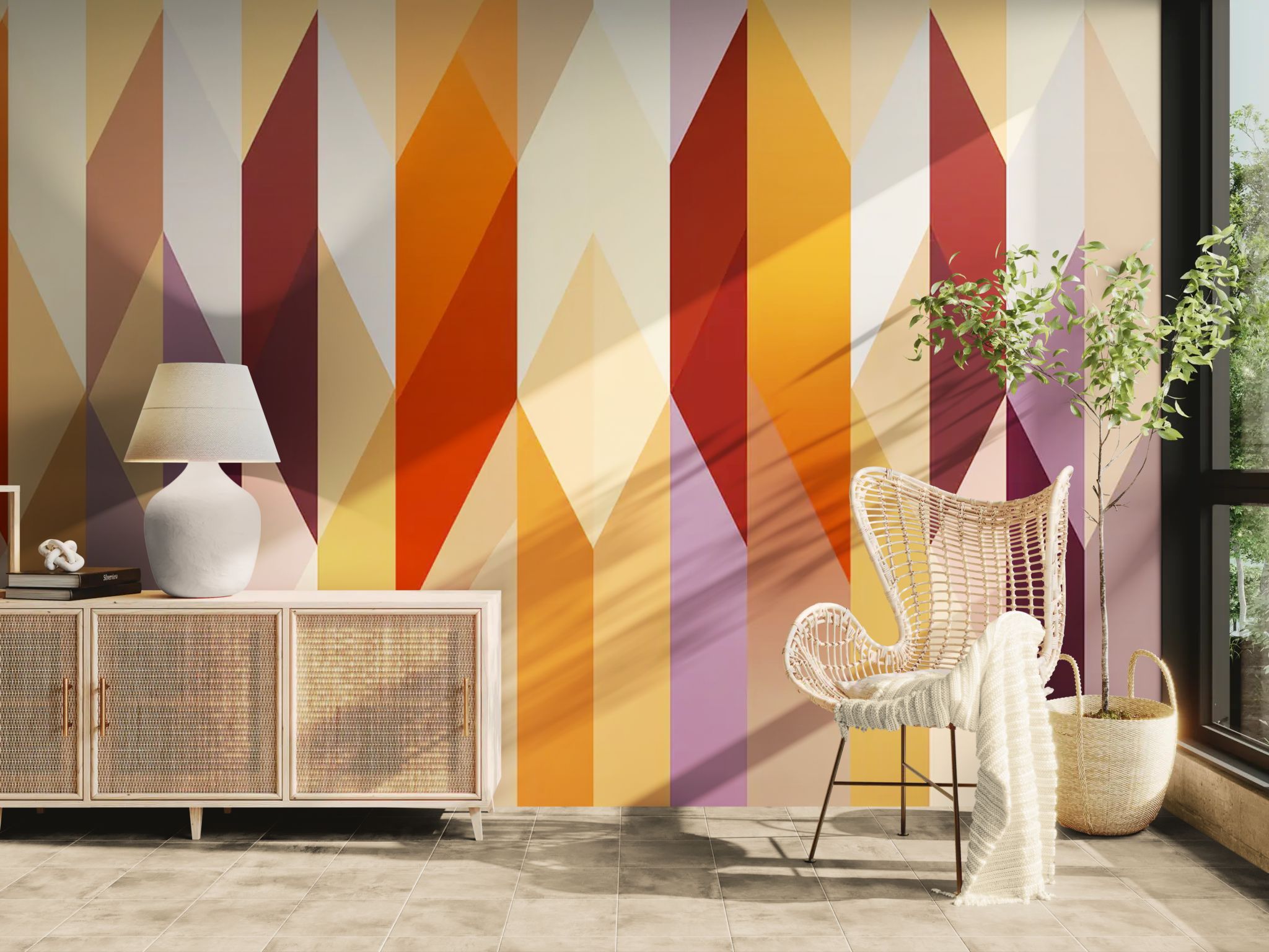 Height and retro warmth. Add visual height to your walls with this geometric wallpaper . The vertical patterns , in warm tones (terracotta, ochre, brown), visually lengthen the room while creating a cozy atmosphere. This updated 70s-inspired design fits perfectly in a contemporary living room or a welcoming dining room.