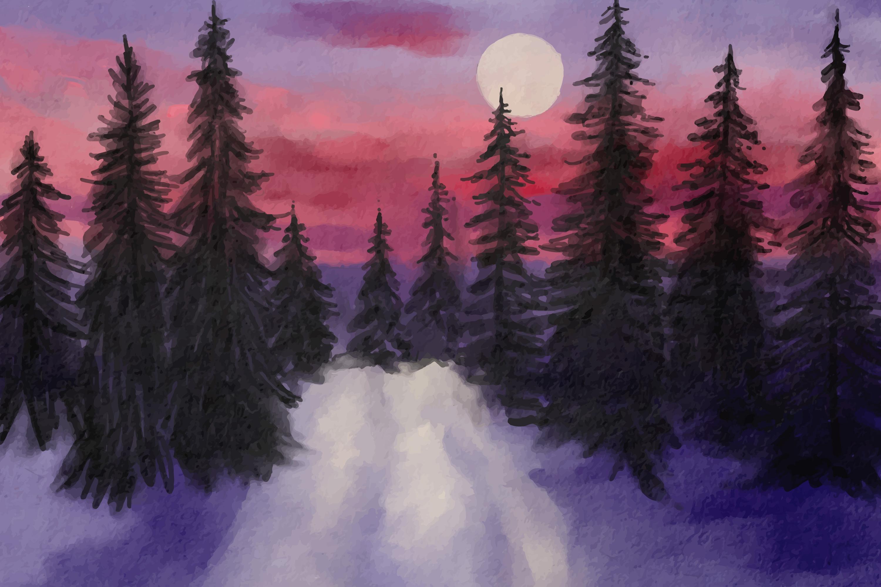 An enchanted night in the forest. Immerse yourself in a mysterious world with this forest wallpaper . Fir trees standing out against a moonlit purple night create a dreamlike atmosphere. The cool, elegant hues are perfect for promoting sleep and reverie. A mesmerizing wall decoration that transforms the space into a magical and soothing haven.