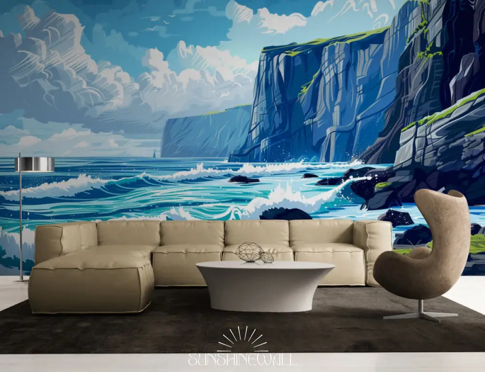 Transport your mind to a rugged coastline, where a cliff juts out over the water in striking balance. The nuanced illustration evokes the mineral strength of the rock and the serenity of the sea, creating a sense of calm and grandeur. Perfect for an interior seeking a harmonious connection between land and sea.