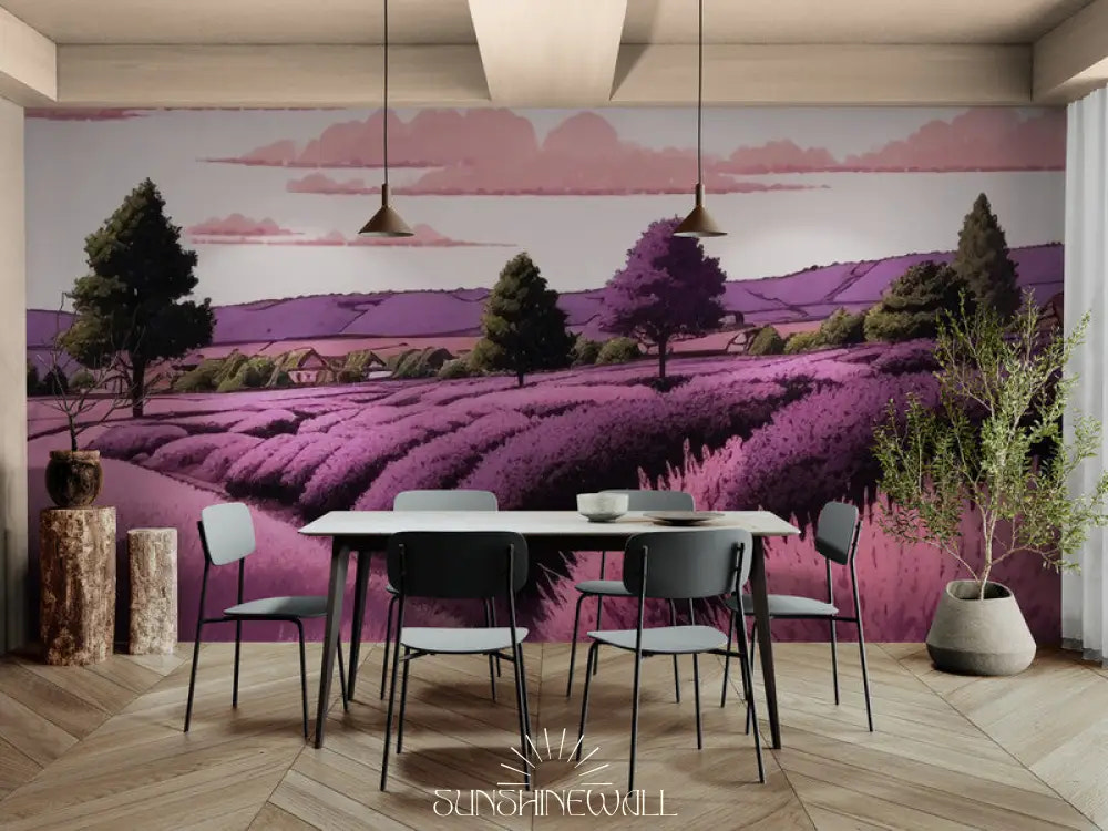 Transform your home with the serenity of a lavender field. This wallpaper captures the softness of the Provençal countryside with its soothing purple and green hues. Ideal for creating a relaxing and elegant atmosphere, it invites relaxation and adds a sophisticated touch of nature to any room.