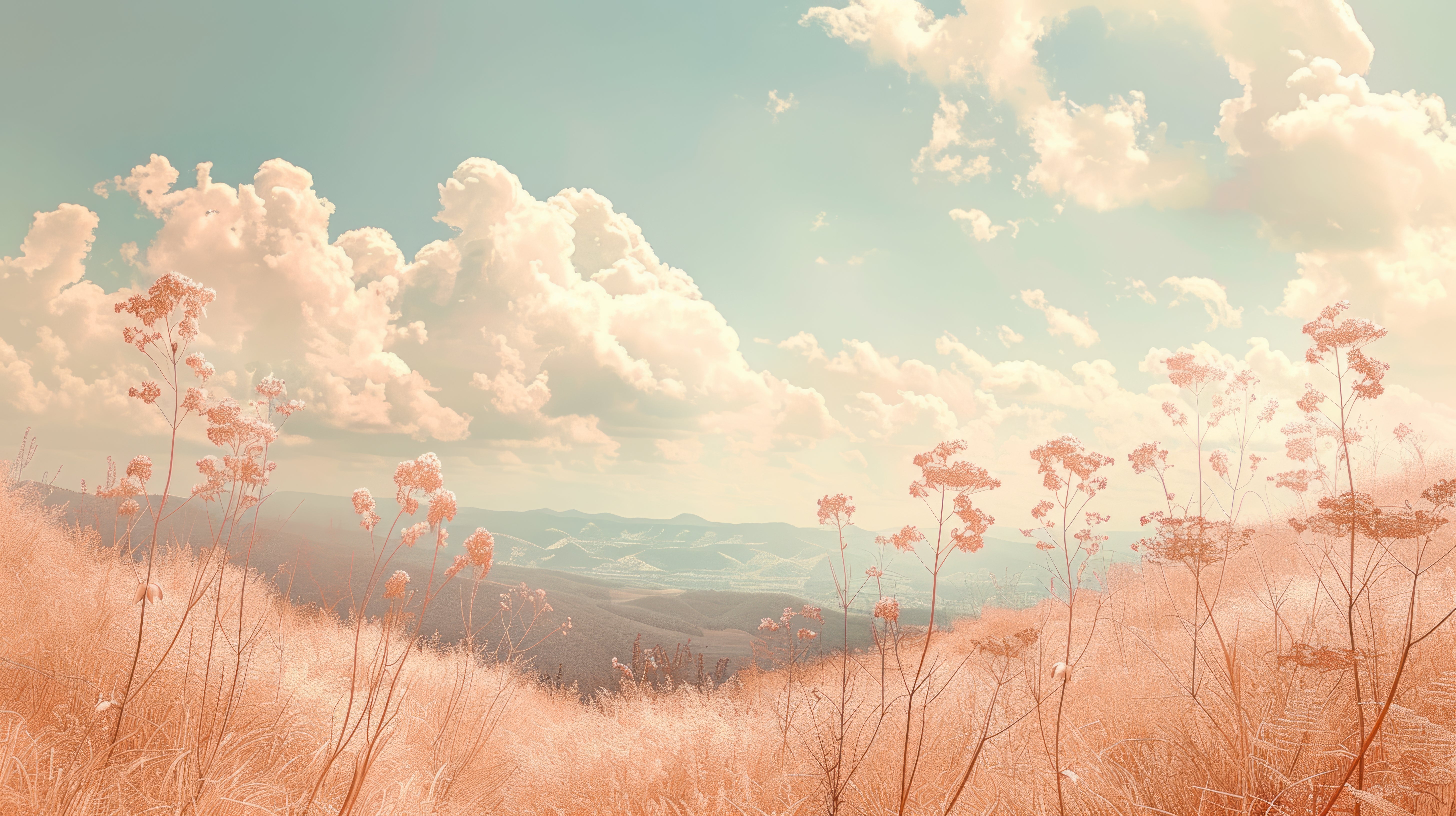 A light spring symphony. Bring in freshness with this landscape wallpaper . The meeting of a field of colorful flowers and a sky filled with fluffy clouds creates a feeling of space and freedom. The vibrant colors of the flora contrast with the softness of the sky for a joyful result. Ideal for brightening up a kitchen, entryway, or inviting living room.