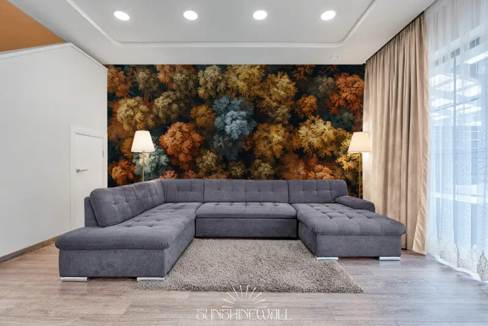 Enjoy an exceptional and original view with this panoramic wallpaper depicting a forest seen from the sky. The varied shades of green and the aerial perspective create a unique feeling of space and freedom. This elegant decor is perfect for visually enlarging a room while adding a contemporary and refined touch. The high-end quality ensures a perfect and lasting finish. Every day, admire a fascinating and inspiring natural panorama. A subtly original decoration that brings elegance and depth to your interior.
