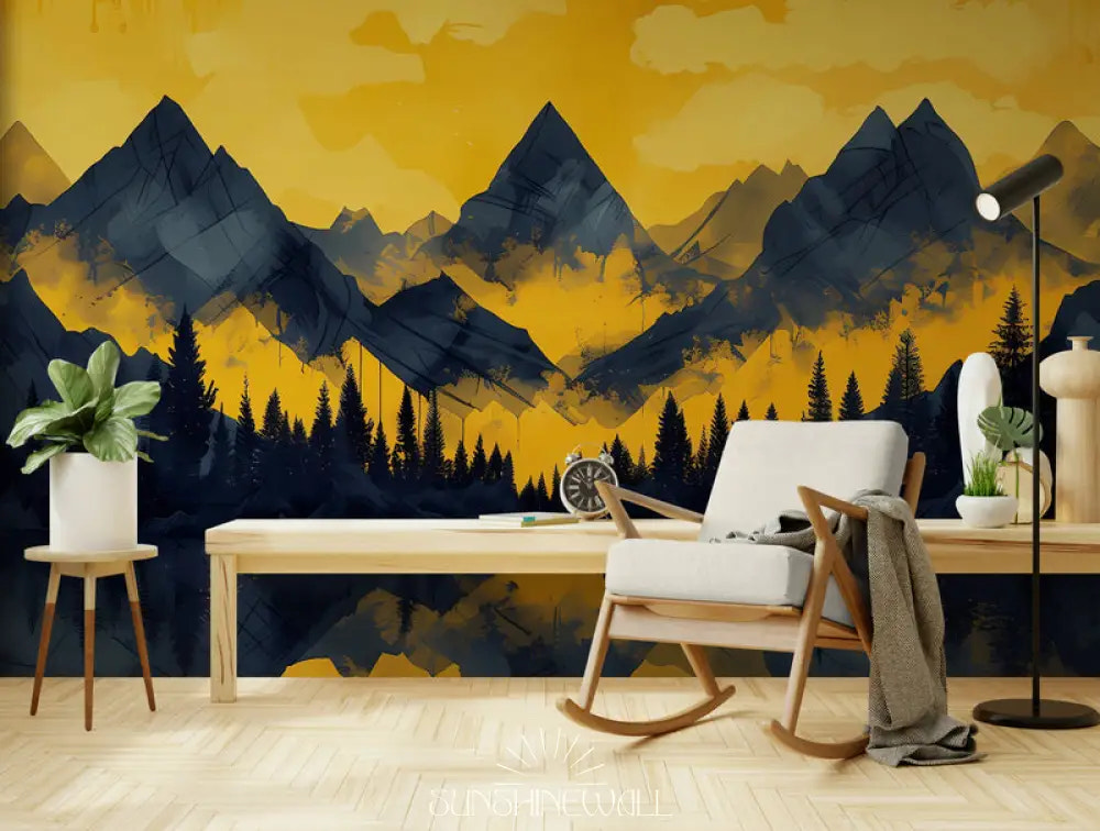 Add a dramatic and vibrant touch to your decor with this panoramic wallpaper depicting mountains ablaze in the light of the setting sun. The glowing red and golden hues create an intense and warm atmosphere, ideal for a living room or office. This energetic and captivating decor brings strength and dynamism to your home every day. Its exceptional quality guarantees a striking and lasting result. Enjoy a spectacular and bold landscape every day that elegantly energizes your decor. A powerful decoration for an interior with a strong personality.