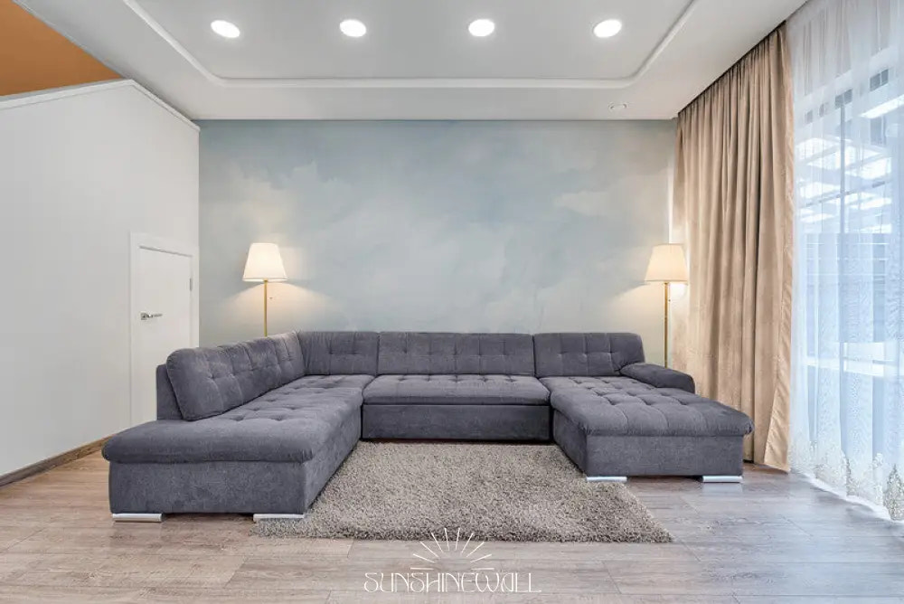 Subtly brighten your home with this panoramic wallpaper depicting a sky dotted with light, delicate clouds. This airy, soothing decor creates a soft, relaxing atmosphere, ideal for visually enlarging a room. Perfect for a living room or bedroom, it invites daily relaxation and serene contemplation. The premium quality ensures a realistic and durable finish. Enjoy this airy, elegant ambiance every day, ideal for bringing lightness and freshness to your home. A subtle and refined decoration for your everyday life.