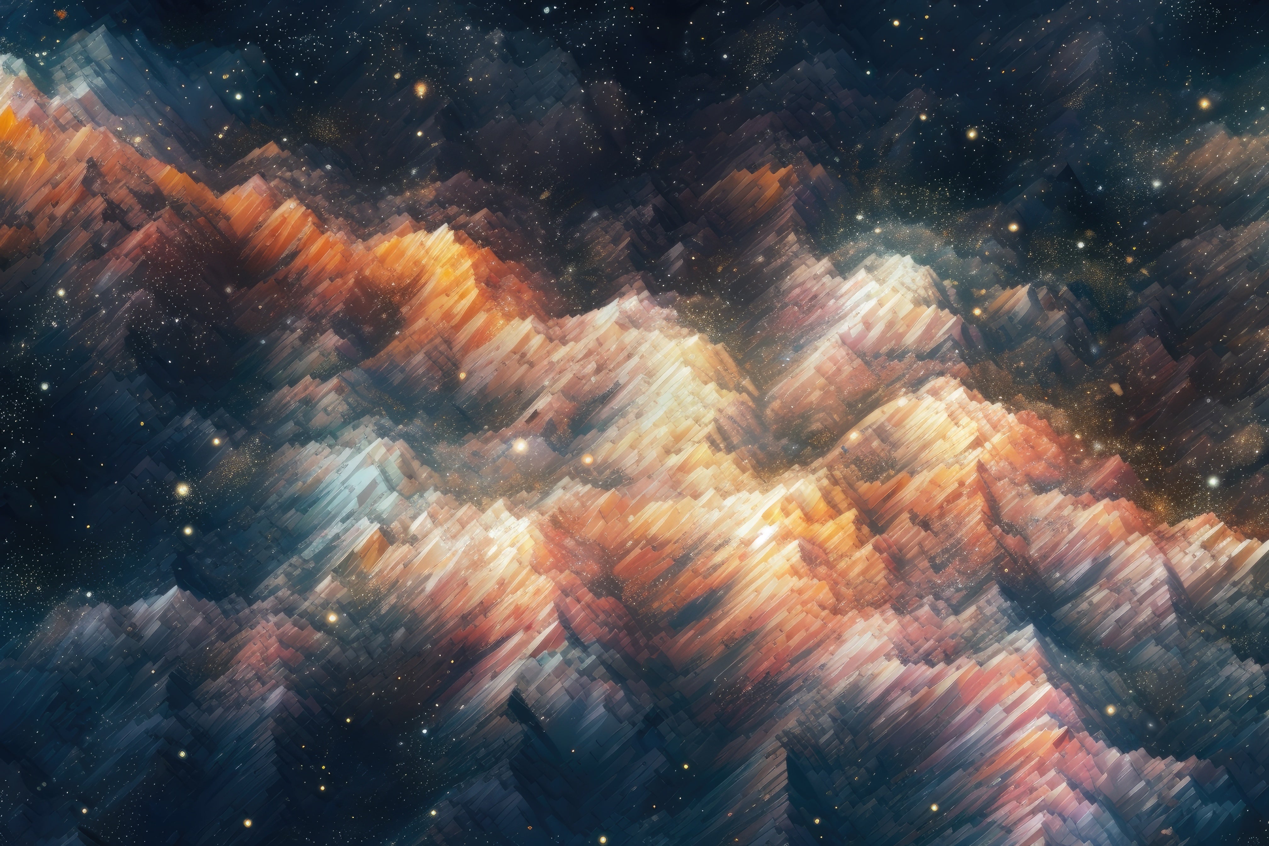 An abstract celestial relief unfolds in a soft, enveloping light. The ethereal forms create a sense of depth. Perfect for a contemporary and inspiring interior. The design evokes infinity with elegance. A truly artistic wall art piece.