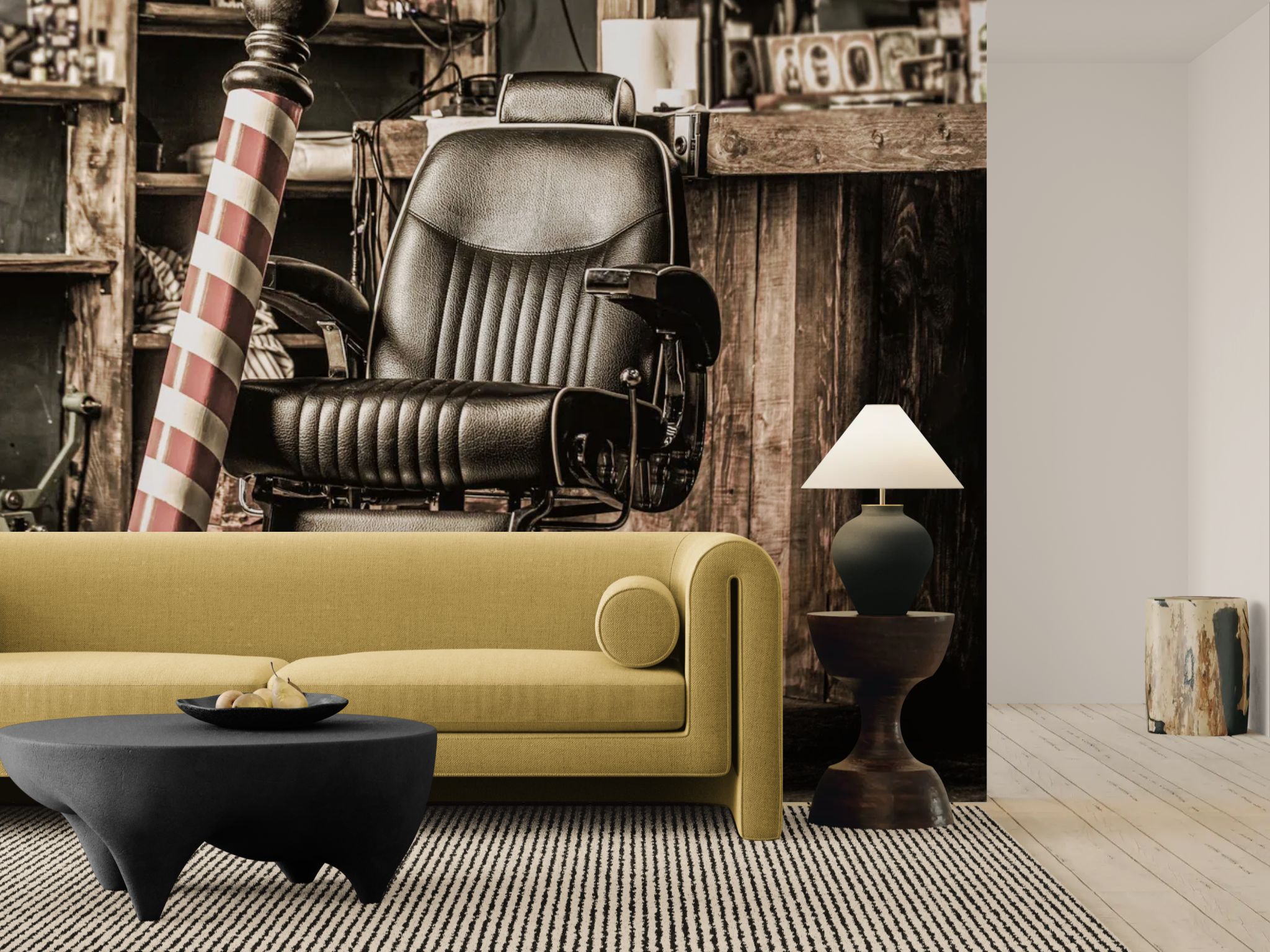 An authentic barber's chair evokes the raw charm of workshops of yesteryear. The vintage style brings character and industrial elegance. Perfect for an interior with a strong personality. The meticulous details enhance the visual authenticity. A piece steeped in history.
