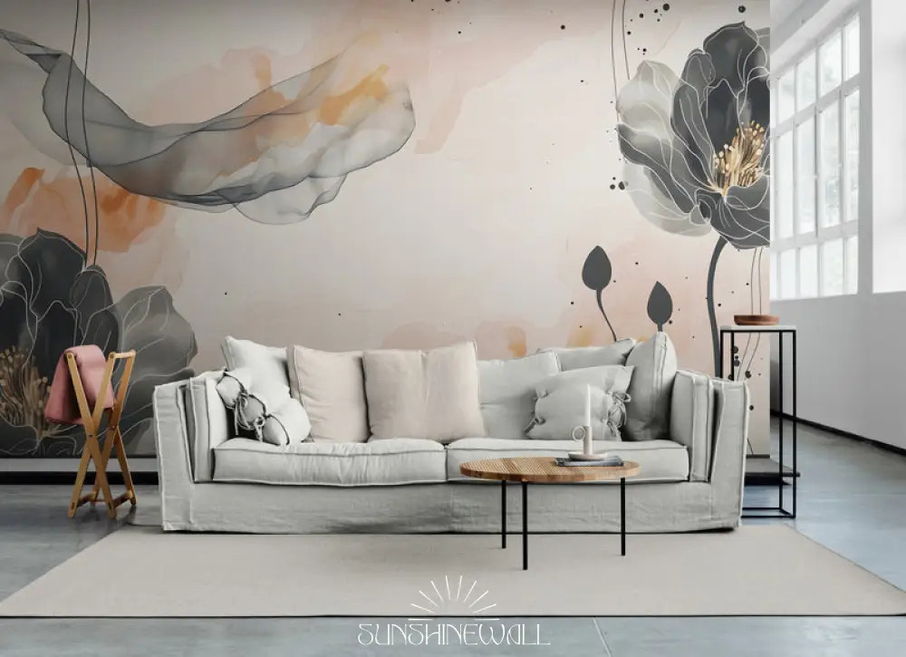 Osez le chic mystérieux du papier peint «Fleurs Noires» abstrait. Son côté sobre et profond est magnifié par une impression irréprochable, faisant ressortir chaque détail floral pour un résultat à la fois minimaliste et puissant.