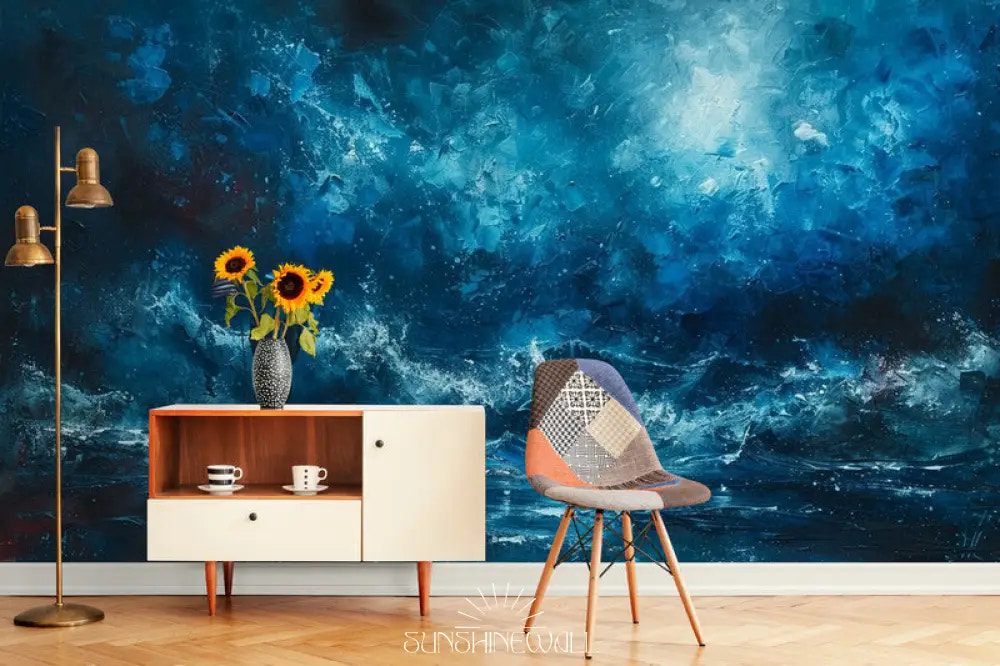 Emportez vos sens dans le ‘Mer Mystérieuse’ abstraite. Son jeu d’ondes fluides et de dégradés envoûtants crée un univers marin captivant, produit avec un soin artisanal pour un résultat de haute volée.
