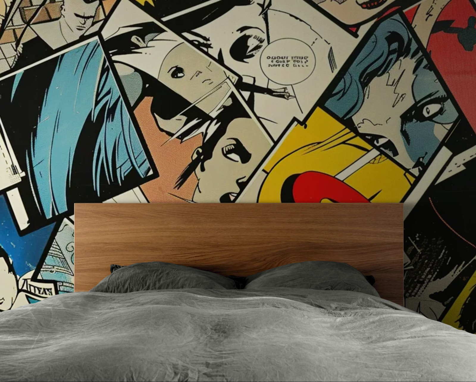 Une histoire rétro sur vos murs. Donnez un style narratif à votre intérieur avec ce papier peint BD. L'assemblage de vignettes vintage, avec leur trame d'impression visible et leurs dialogues en bulles, évoque les comics de l'âge d'or. Ce décor graphique et noir et blanc (ou sépia) apporte une texture intellectuelle et rétro. Idéal pour habiller un mur de bureau, de bibliothèque ou de toilettes pour un effet "cabinet de lecture".