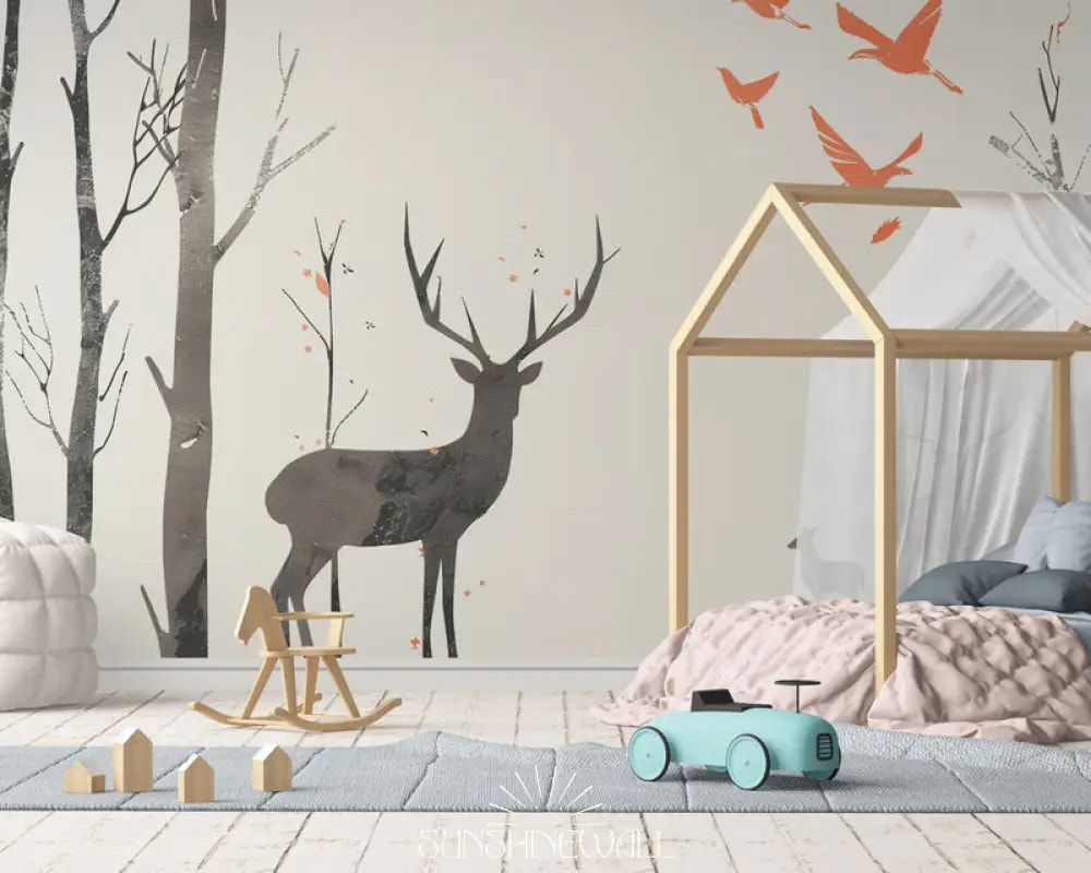 Exposez la grâce de la faune sylvestre grâce au «Papier Peint Enfant – Biche et Cerf». Ces deux complices, souvent entourés de feuillages, invitent l’enfant à se familiariser avec la nature. L’impression premium rehausse la délicatesse des animaux, donnant vie aux regards doux et aux bois majestueux. Un décor enchanteur pour plonger votre enfant dans un univers forestier serein.
