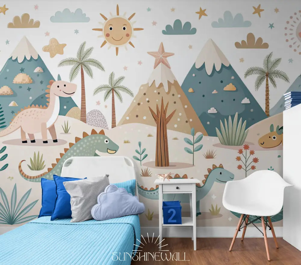 Étonnez l’enfant avec un concept décalé via le «Papier Peint Enfant – Forêt et dinosaures». Les T-Rex, cachés parmi les pins, ou les brontosaures, broutant les fougères, suscitent l’étonnement de ce mélange temporel. L’impression soignée détaille tant le bois que la peau des dinos, pour un résultat captivant. Une fusion fascinante où préhistoire et modernité se rencontrent, afin de nourrir l’imaginaire.
