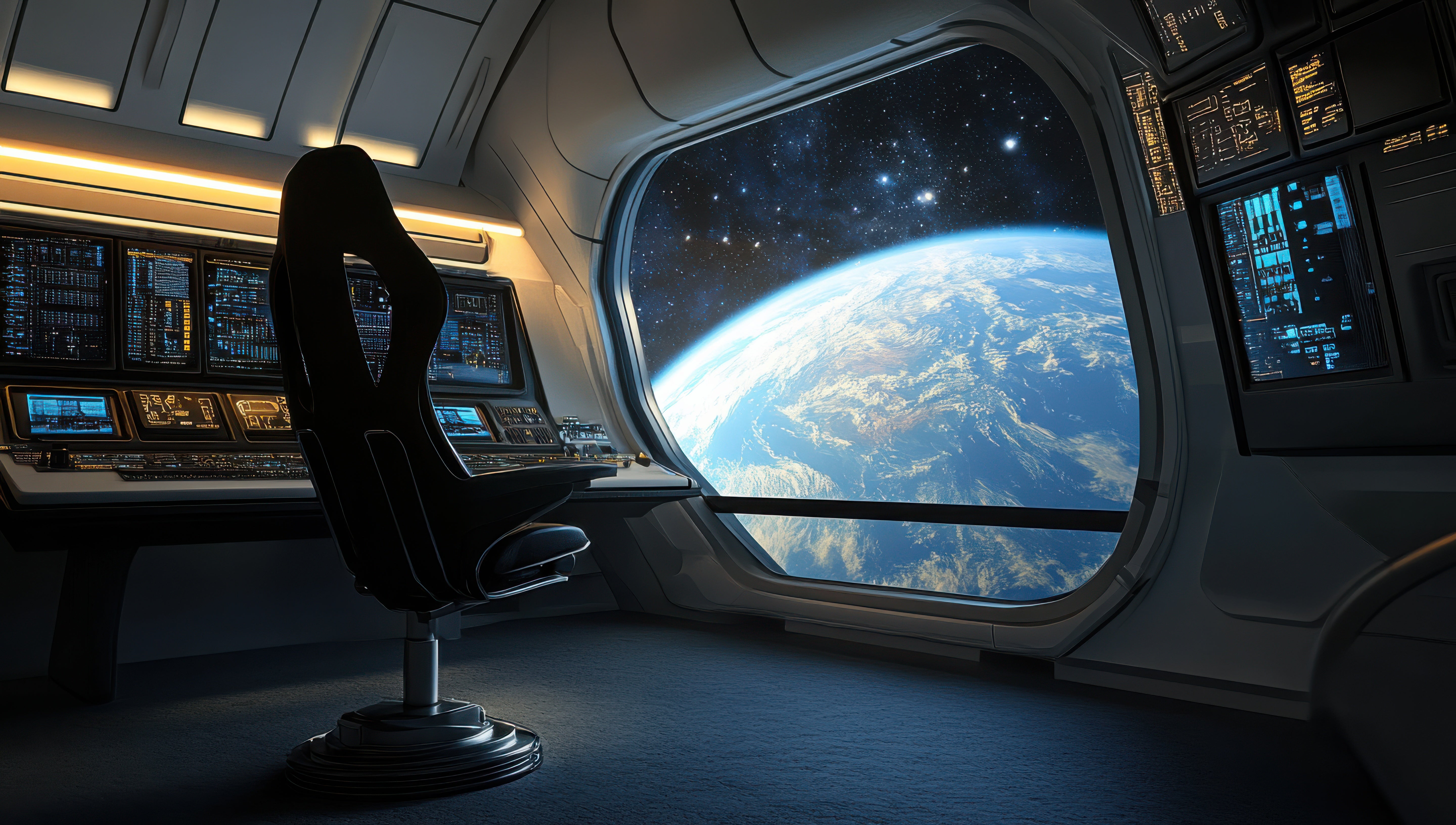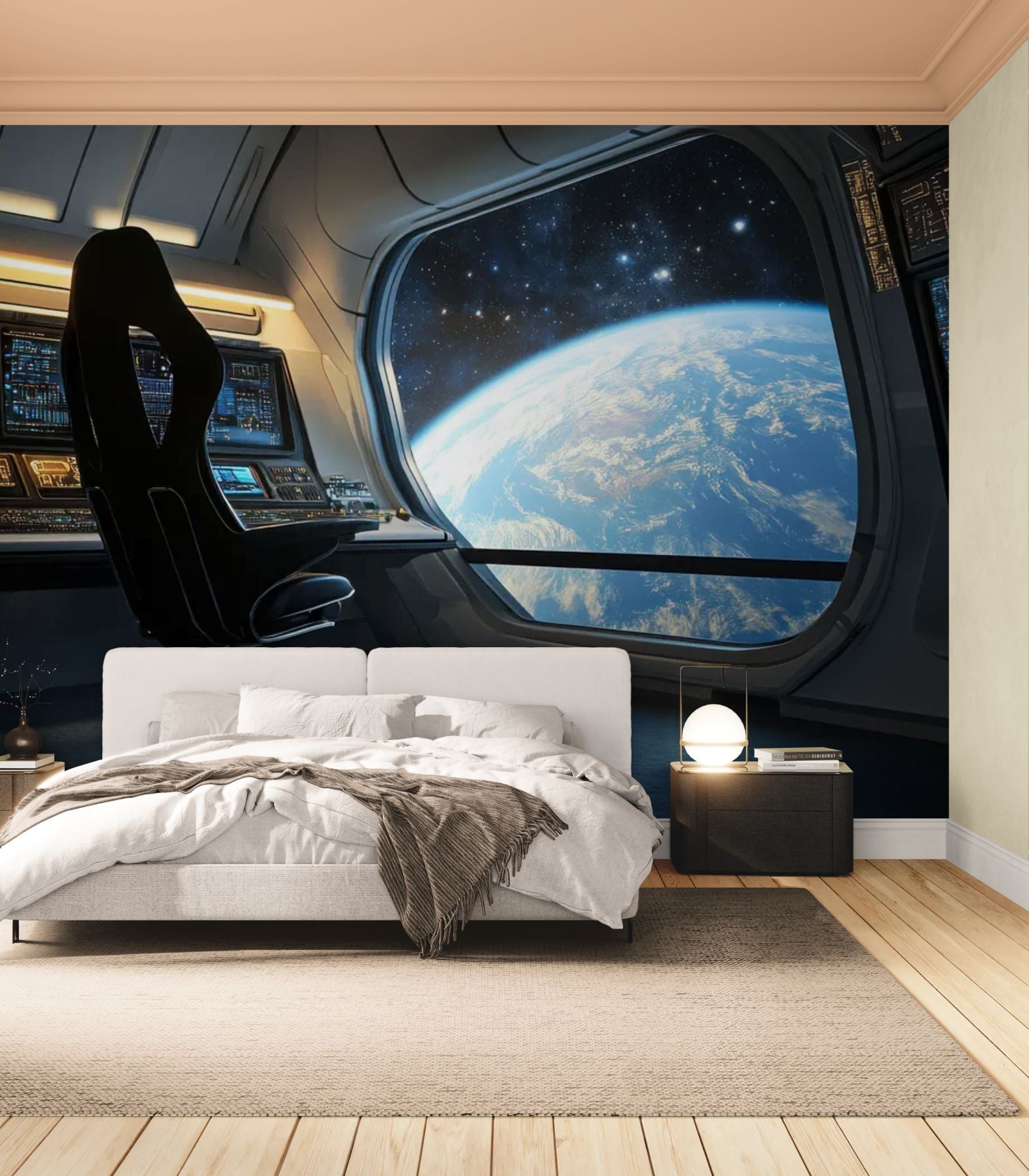 Une plateforme suspendue en plein cosmos, traversée par les éclats de nébuleuses et les routes interstellaires. Immersion totale pour un salon futuriste, une salle home-cinéma ou un bureau tourné vers l’infini.