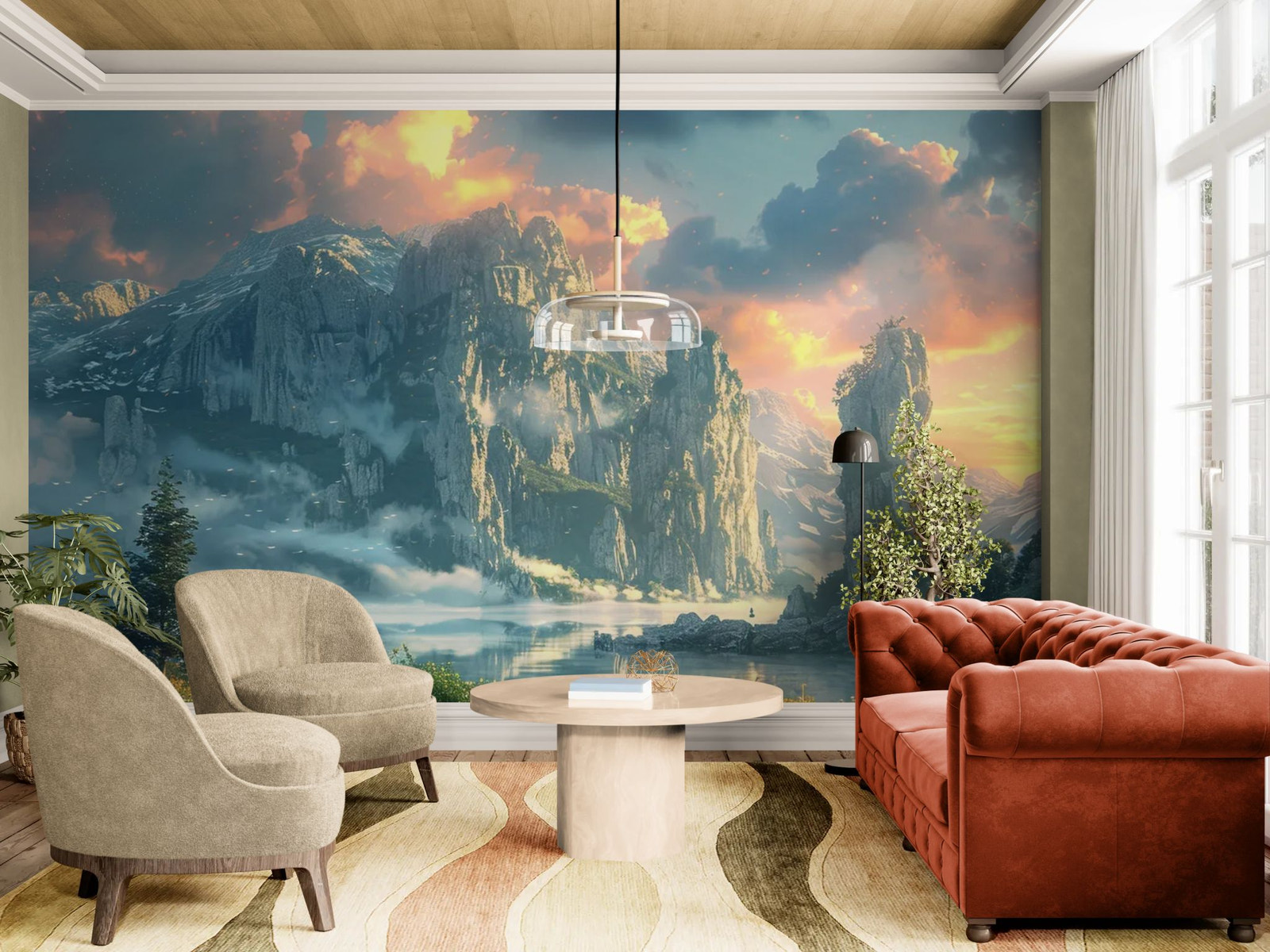Une évasion mystique vers des contrées imaginaires. Laissez votre esprit vagabonder avec ce papier peint fantaisie spectaculaire. Les pics rocheux acérés émergeant d'un lac brumeux créent une atmosphère onirique digne des plus grandes sagas épiques. Ce décor profond et mystérieux agrandit visuellement l'espace tout en instaurant une ambiance calme et intrigante. Parfait pour une pièce dédiée à la détente, à la lecture ou au rêve, offrant une fenêtre ouverte sur un monde légendaire.