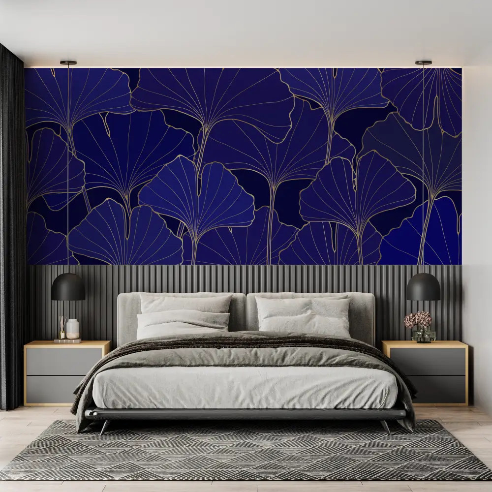 Apportez de la majesté au décor via le Papier Peint Feuillage – Ginkgo Bleu Nuit. Les feuilles de ginkgo, icône d’élégance, se détachent sur un fond nuit, suscitant un rendu raffiné et poétique. Une alliance parfaite entre la douceur végétale et un style contemporain intense.
