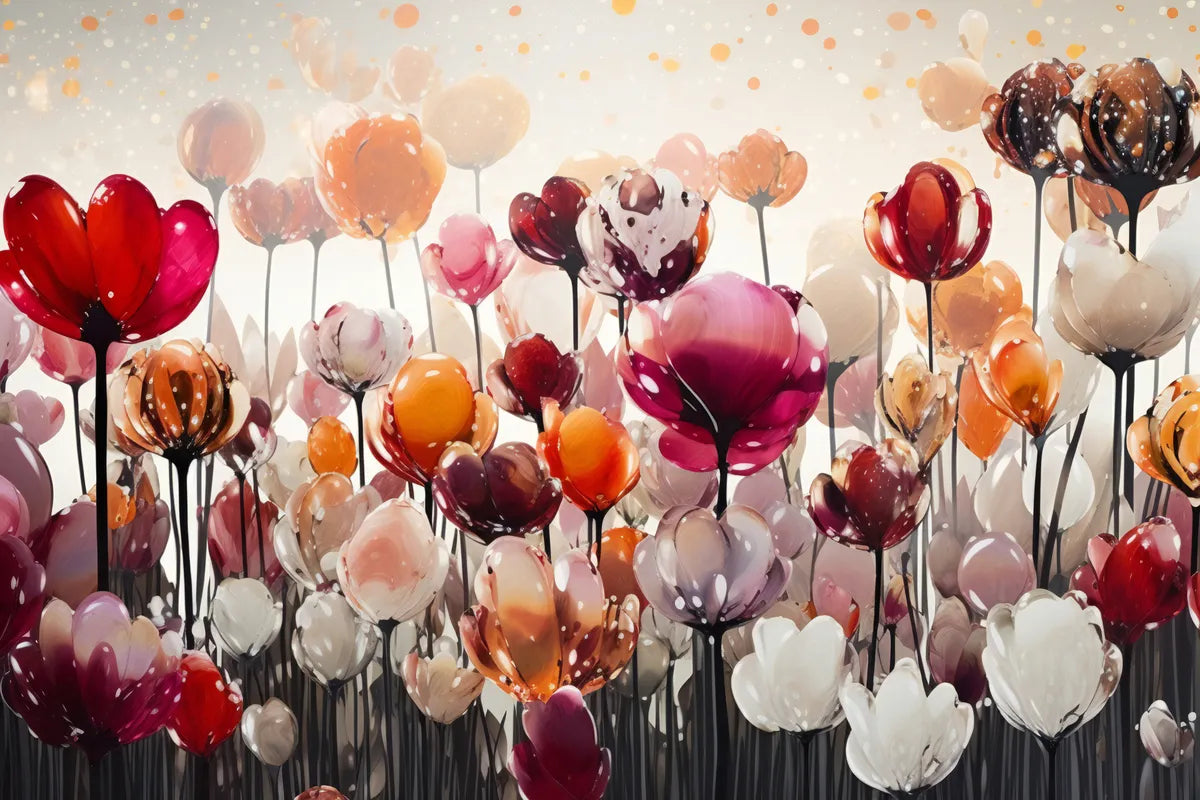 Apportez une touche d’artisanat contemporain avec des tulipes de verre, brillamment colorées comme soufflées par un maître-verrier. L’impression rend hommage aux reflets et transparences, créant un effet cristallin tout en conservant la douceur florale. Un choix détonant pour marier esthétique florale et modernité artistique.