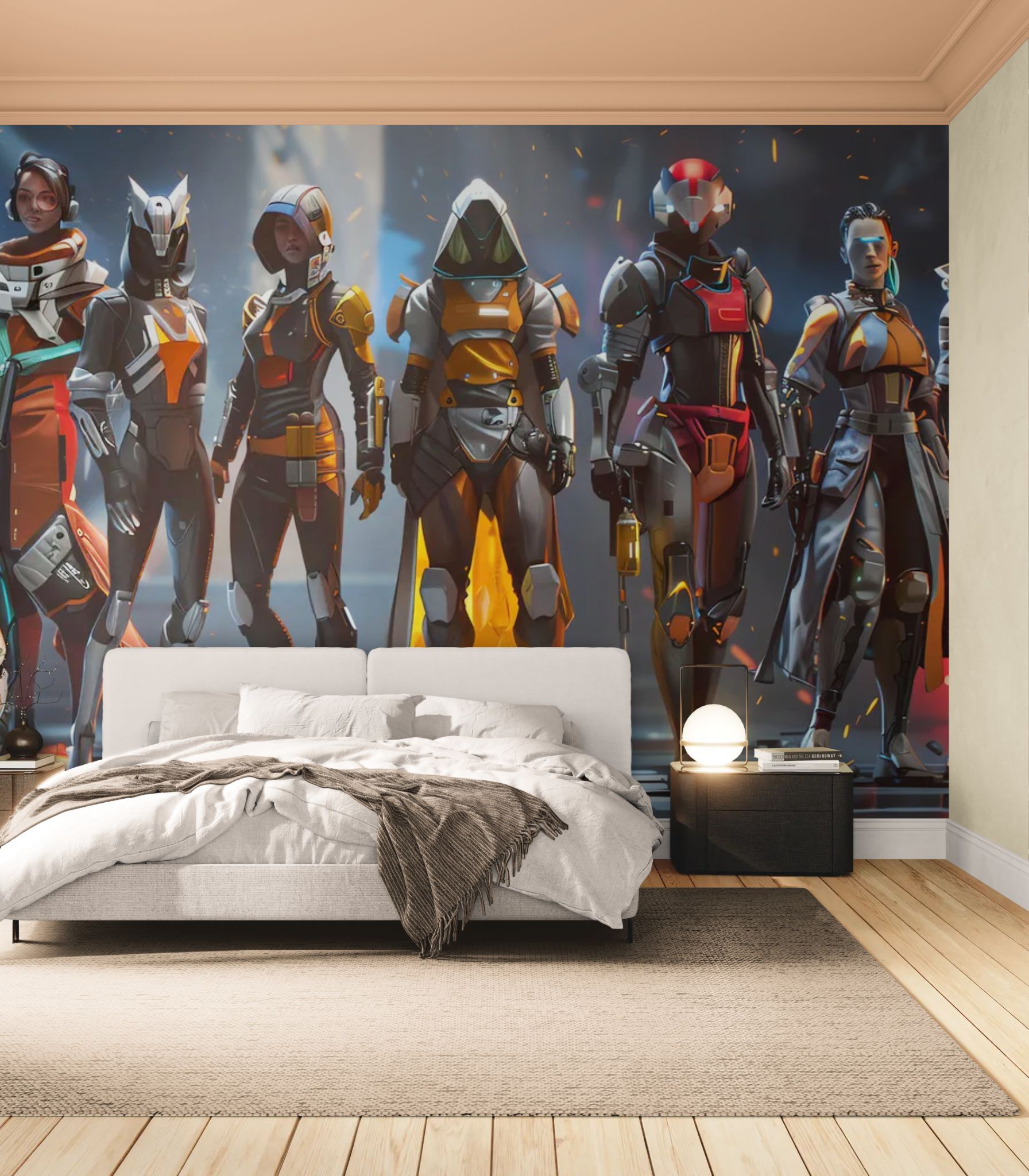 Un commando d’élite renforcé par la technologie la plus avancée, prêt à défendre les cités du futur. Style percutant, idéal pour une salle gaming, un studio streaming ou un décor sci-fi hautement immersif.