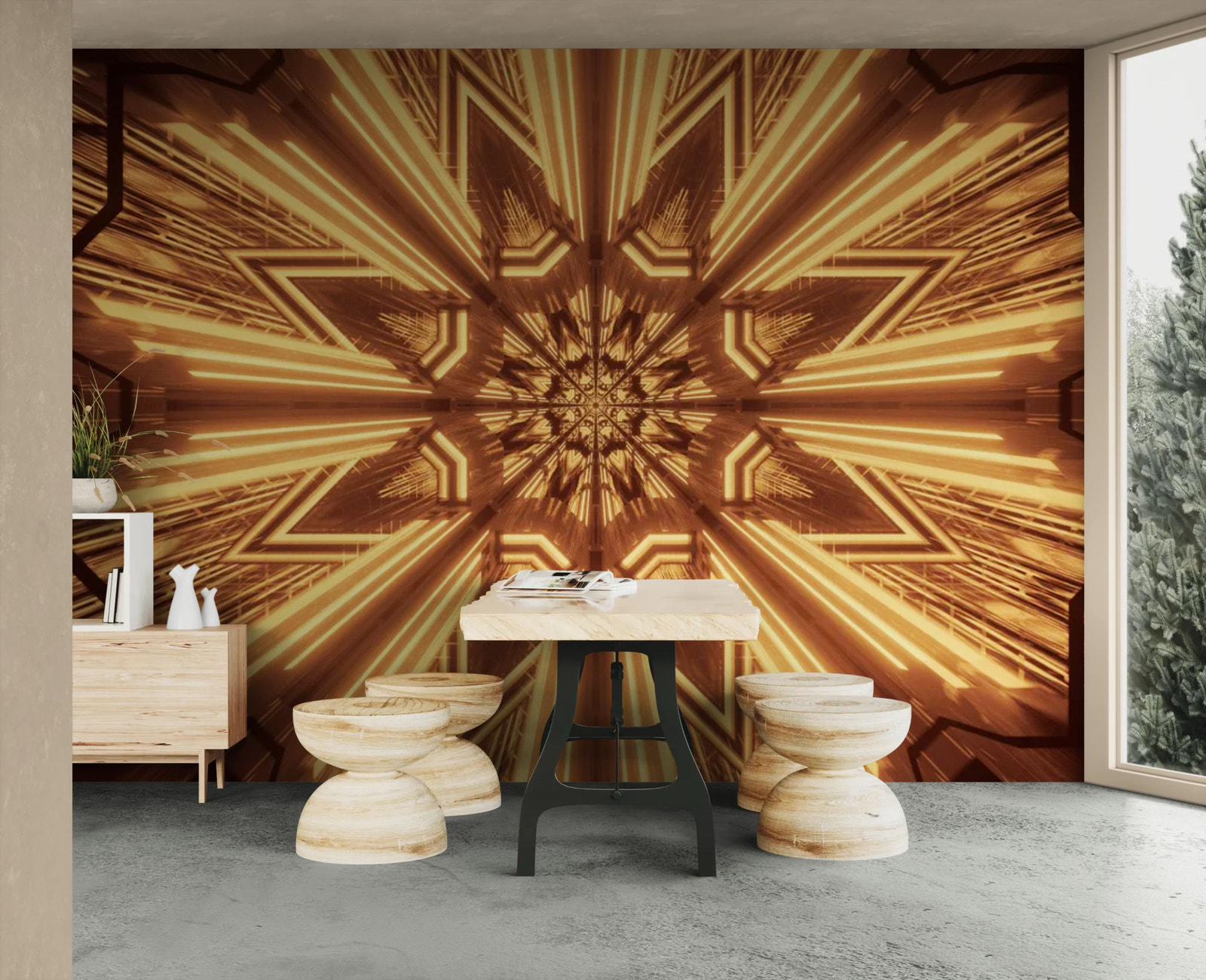 Un motif géométrique doré illumine l’espace avec subtilité. Les lignes structurées apportent modernité et équilibre. Idéal pour une décoration chic et actuelle. La palette lumineuse renforce la sensation d’espace. Une signature décorative élégante.
