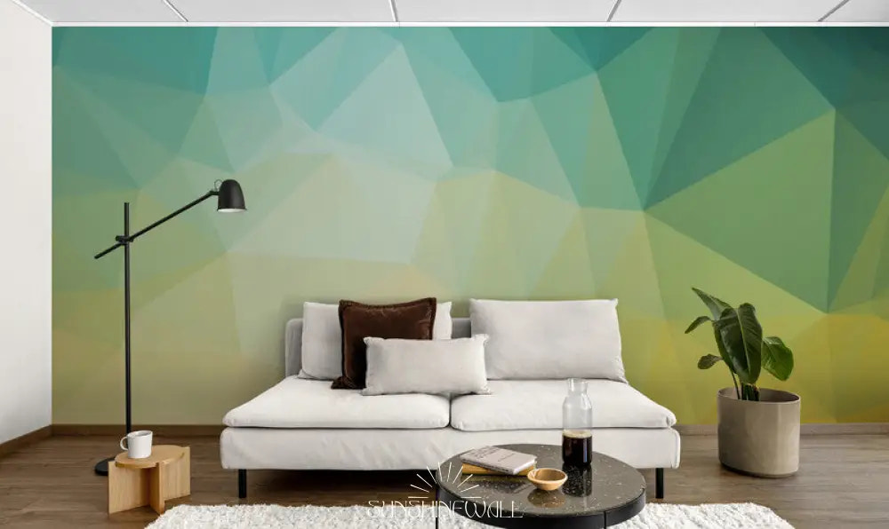 Ancrez une atmosphère empreinte de vitalité avec des triangles jaune, bleu et vert, soigneusement disposés ou enchevêtrés. L’impression, soigneuse, rehausse chaque teinte, rappelant les paysages ensoleillés ou l’énergie printanière. Un choix décoratif qui diffuse dynamisme et convivialité, transformant l’espace en un terrain d’expression coloré et moderne.