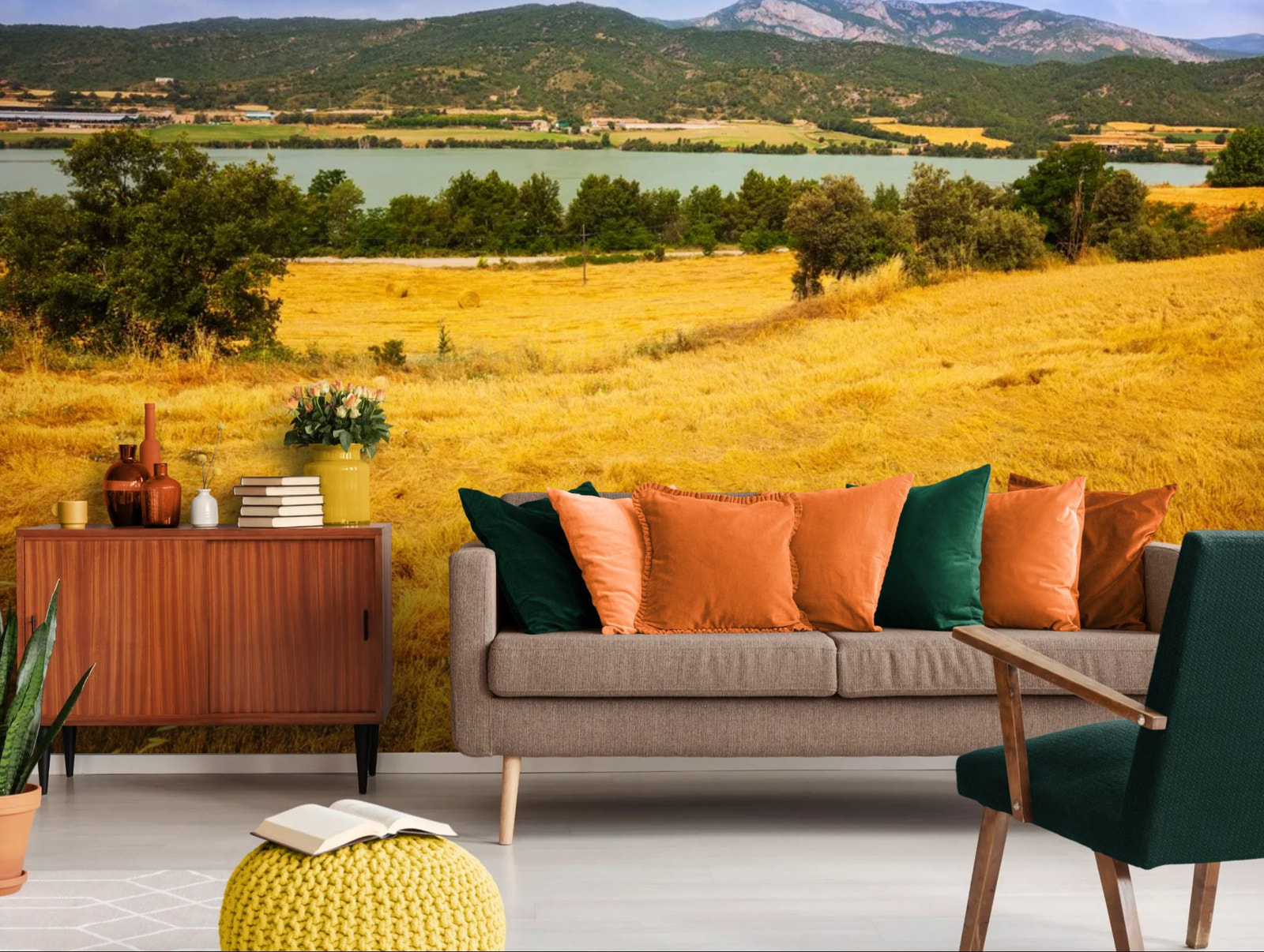 Une vallée baignée de lumière dorée s’étend le long d’une rivière paisible. Les couleurs chaleureuses instaurent une atmosphère sereine. Idéal pour créer un décor apaisant et lumineux. La scène invite à la détente. Une échappée naturelle pleine de douceur.