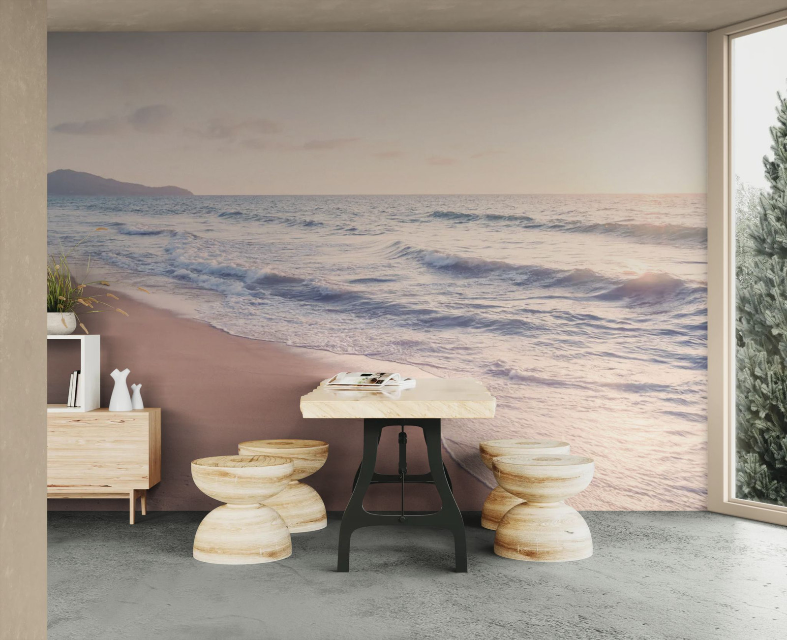 Un rivage baigné de lumière compose un décor doux et apaisant. Les nuances claires évoquent la sérénité du bord de mer. Idéal pour instaurer une ambiance relaxante et élégante. La scène ouvre l’espace avec légèreté. Une échappée maritime raffinée.