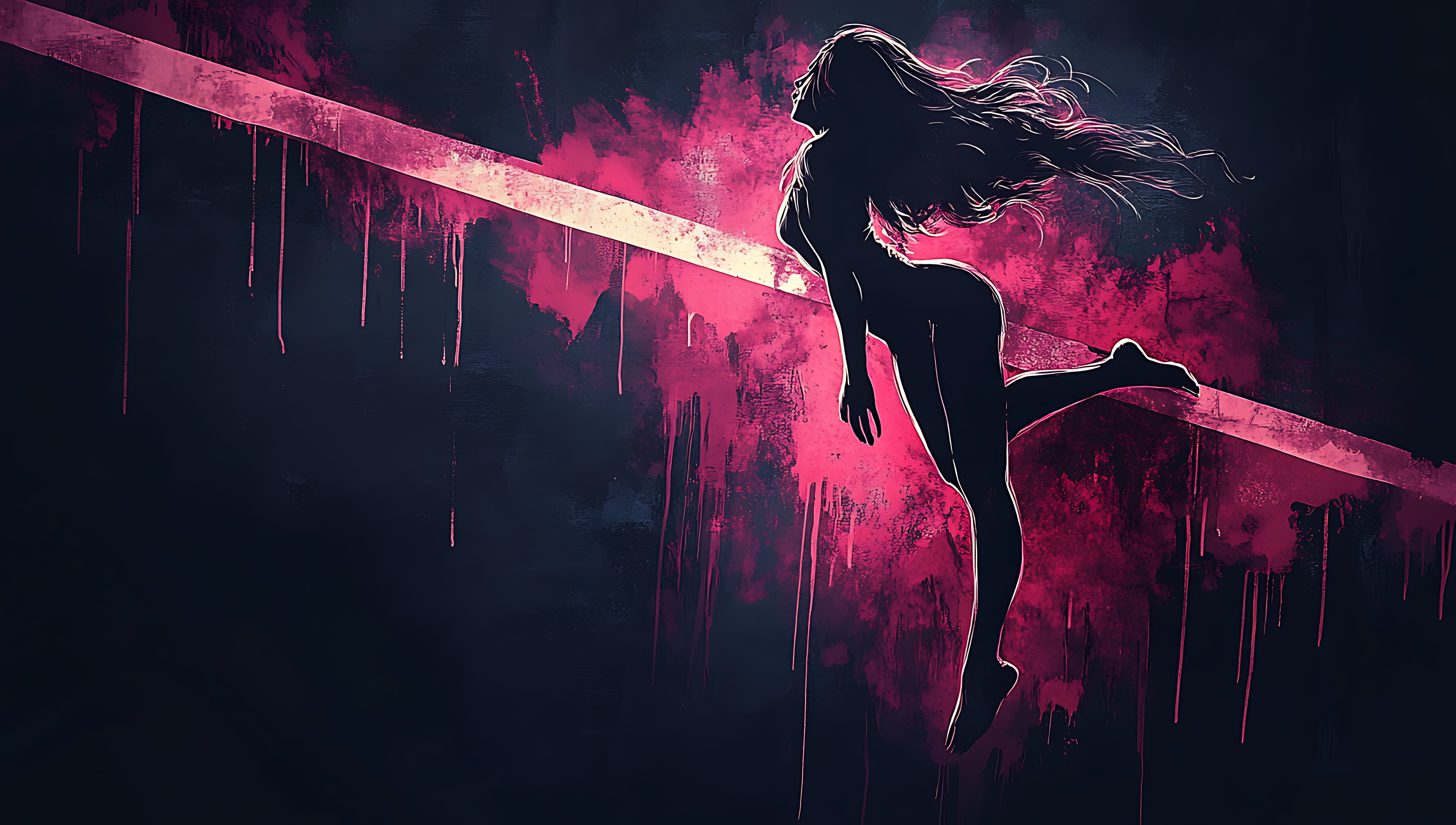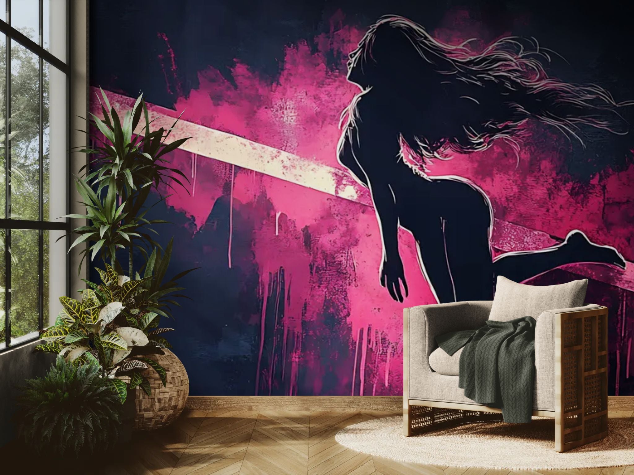 Silhouette féminine électrique, style pop art vibrant aux accents rose néon. Parfait pour un salon design, un studio créatif ou une déco urbaine audacieuse.