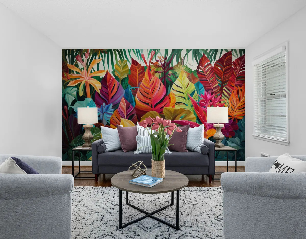 Égayez votre décoration avec ce papier peint tropical aux feuilles exotiques colorées. Ses motifs vibrants et ses couleurs intenses apportent une touche d'énergie, de fraîcheur et d'exotisme moderne à votre espace. Idéal pour un salon animé, une chambre créative ou un espace convivial, ce décor inspire quotidiennement bonne humeur, vitalité et charme tropical. Sa qualité supérieure garantit un rendu lumineux, précis et durable.