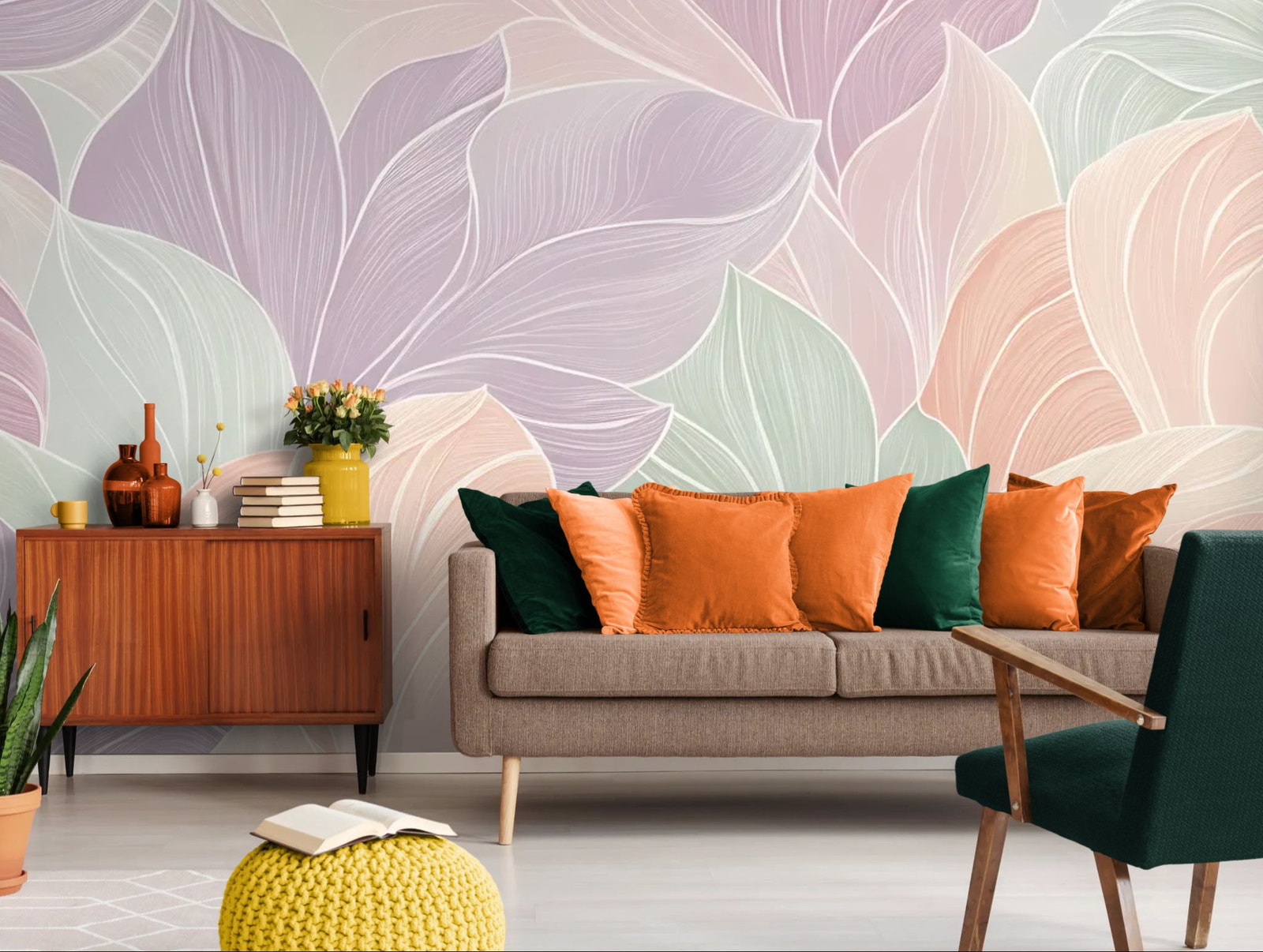 Un feuillage abstrait aux teintes pastel compose un décor moderne et apaisant. Les formes stylisées apportent rythme et douceur visuelle. Idéal pour une décoration contemporaine et élégante. Les couleurs subtiles illuminent l’espace. Une création végétale au style délicat.