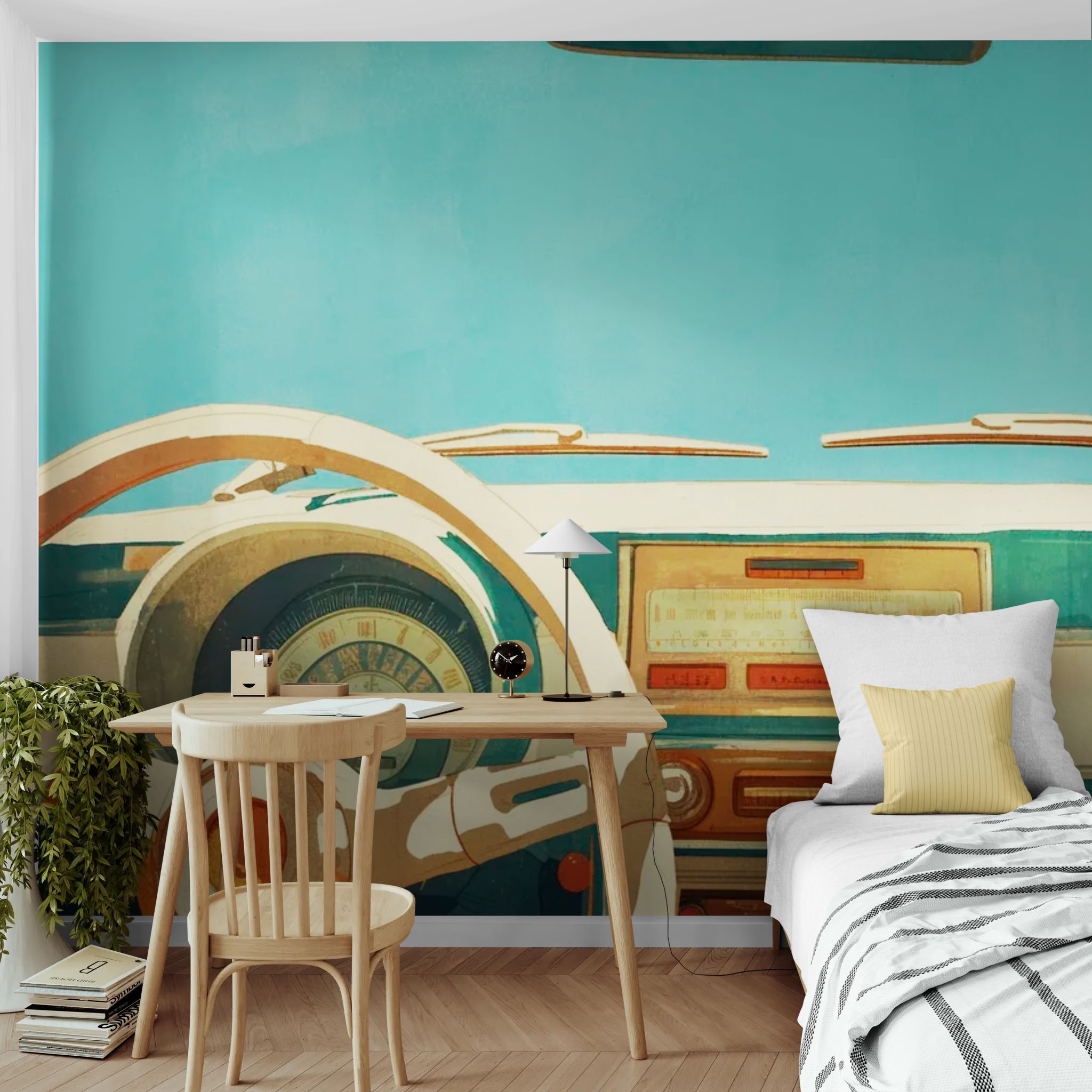 Un tableau de bord vintage dans des nuances bleutées élégantes qui évoquent les routes mythiques et l'esprit des grands voyages. Son rendu haut de gamme confère une atmosphère rétro chic, parfaite pour les amateurs de belles mécaniques. À installer dans un bureau, un salon masculin ou une pièce à l’univers collector.