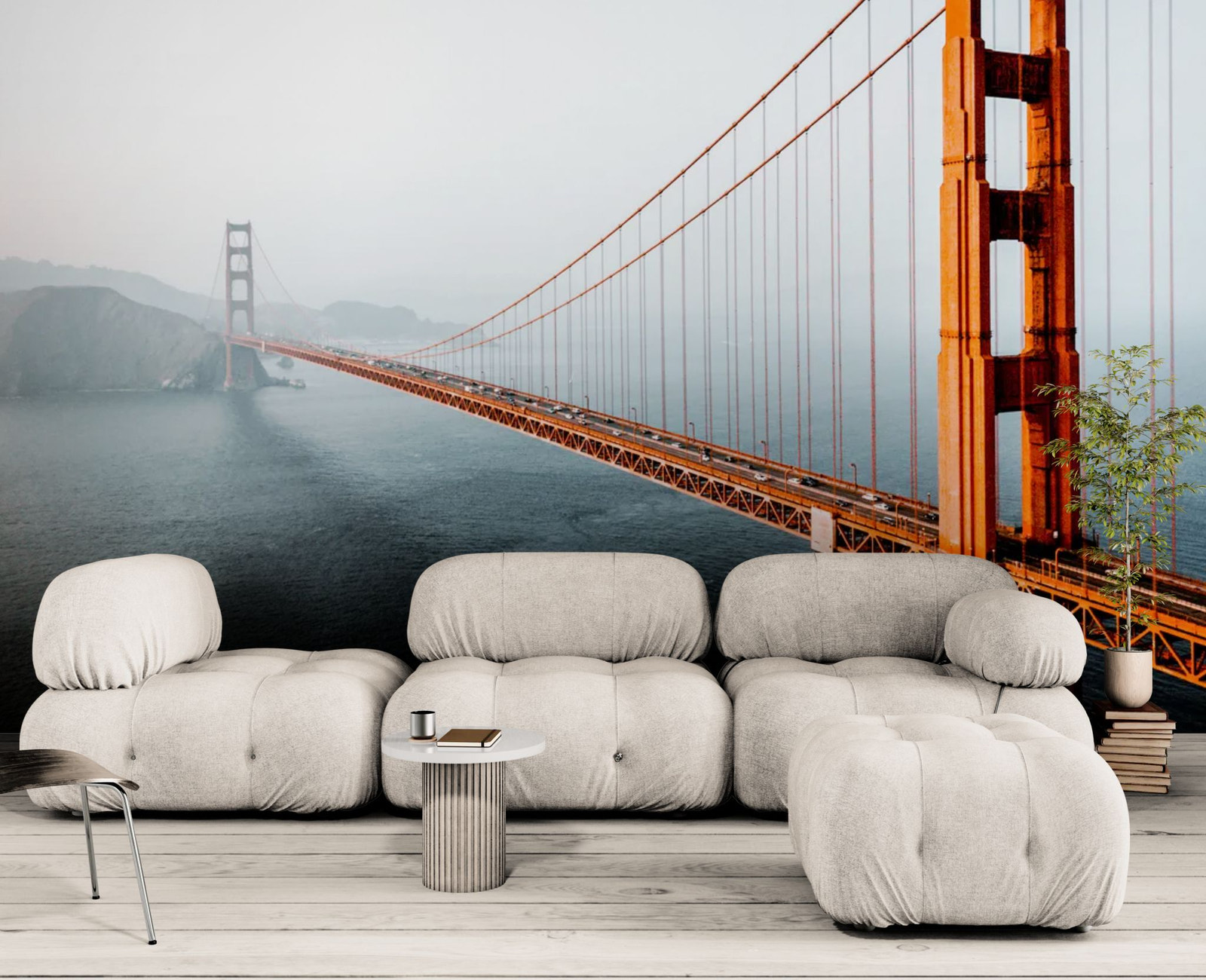 L'icône de San Francisco dans votre salon. Invitez la majesté du Golden Gate chez vous avec ce papier peint panoramique. La structure rouge émergeant d'une brume mystique crée une perspective grandiose et une profondeur saisissante. Ce décor urbain apporte une touche d'évasion sophistiquée, idéale pour agrandir visuellement un salon ou dynamiser un bureau moderne. Une pièce maîtresse au caractère affirmé qui allie architecture grandiose et atmosphère rêveuse.
